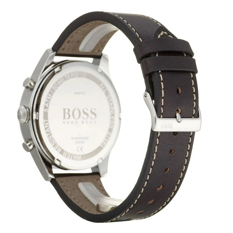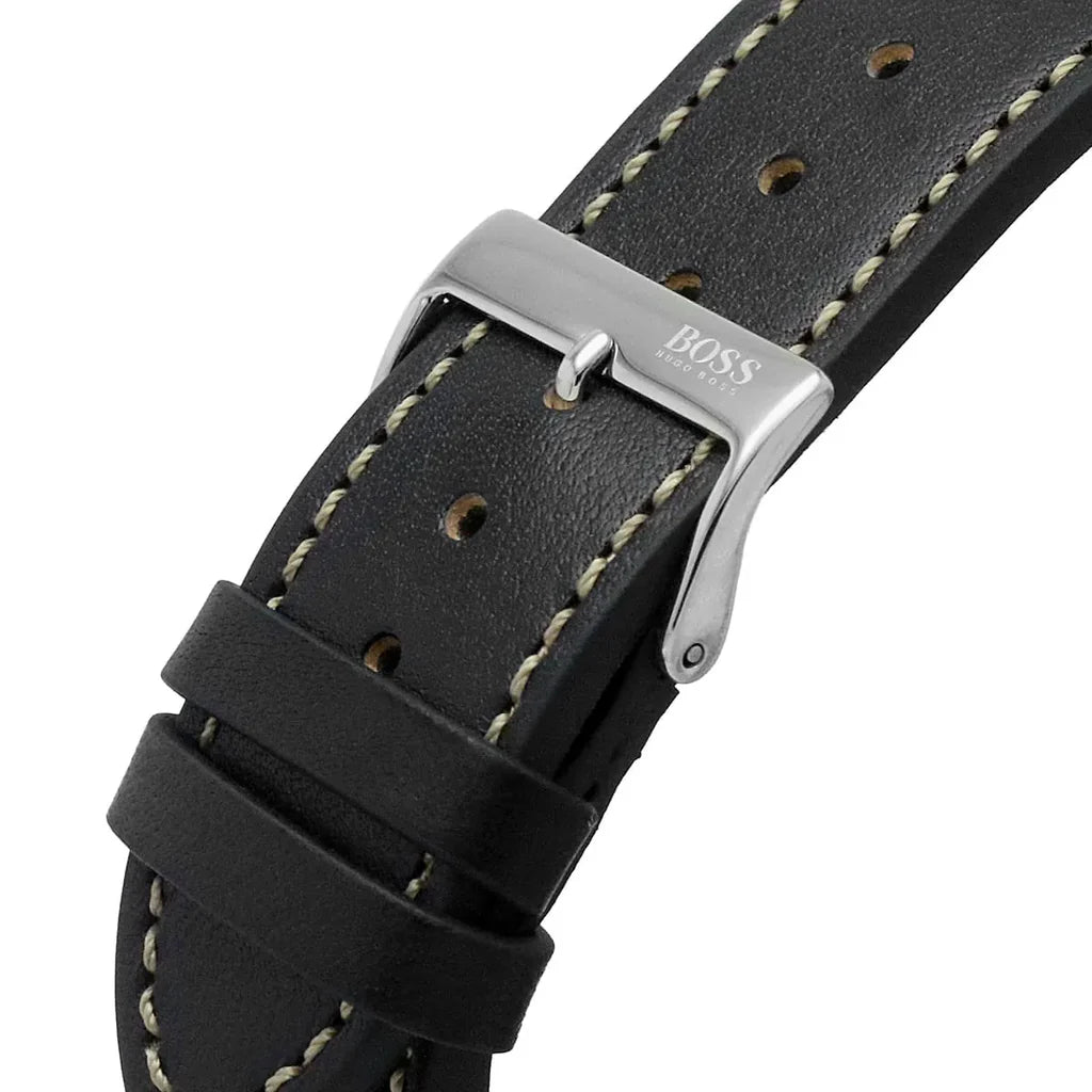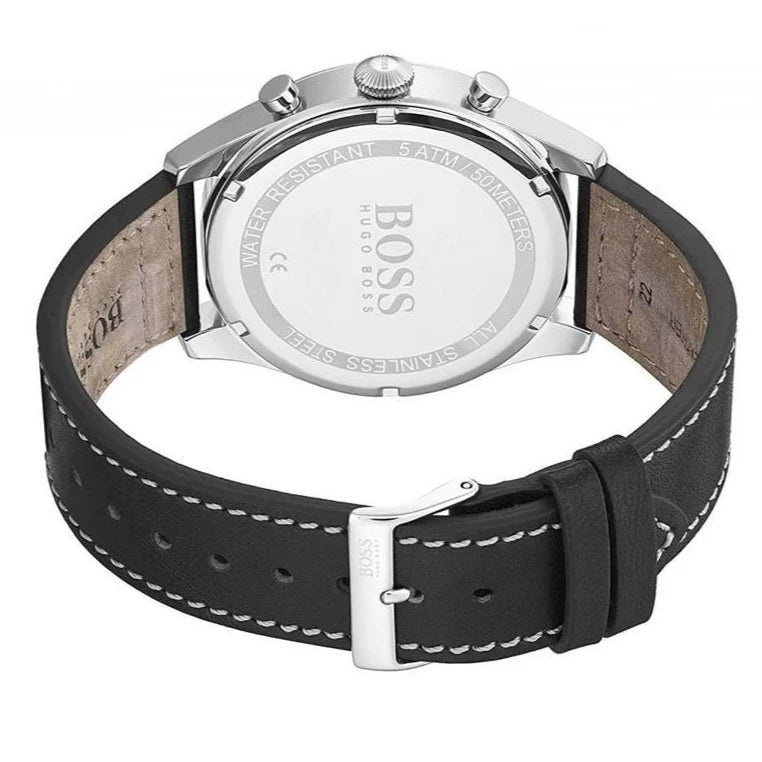 Hugo Boss Pioneer Chronograph Black Dial Black Leather Strap Watch For Men - 1513708