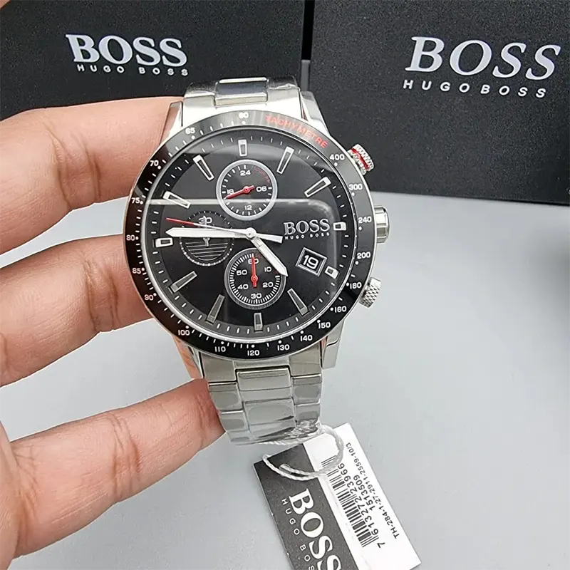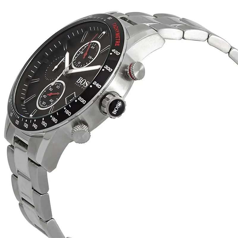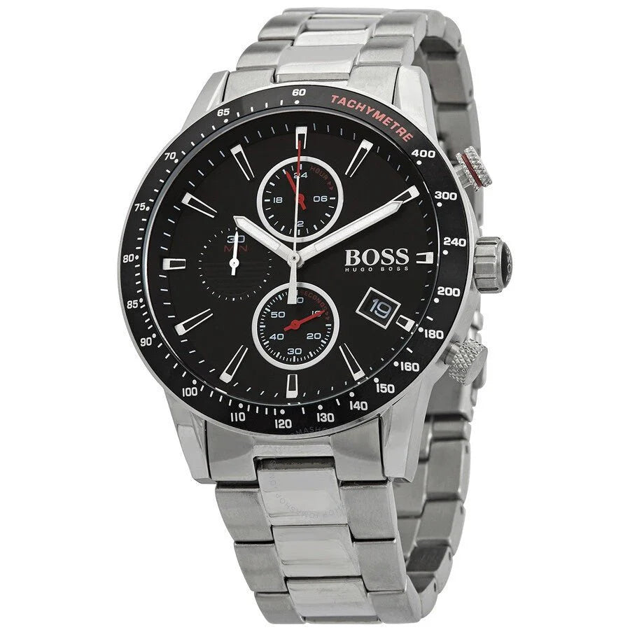 Hugo Boss Rafale Chronograph Black Dial Silver Steel Strap Watch for Men - 1513509