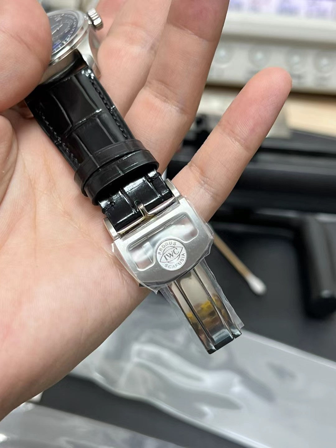 IWC Swiss 1:1 Watch Schaffhausen Chronograph Black Leather Strap 42mm
