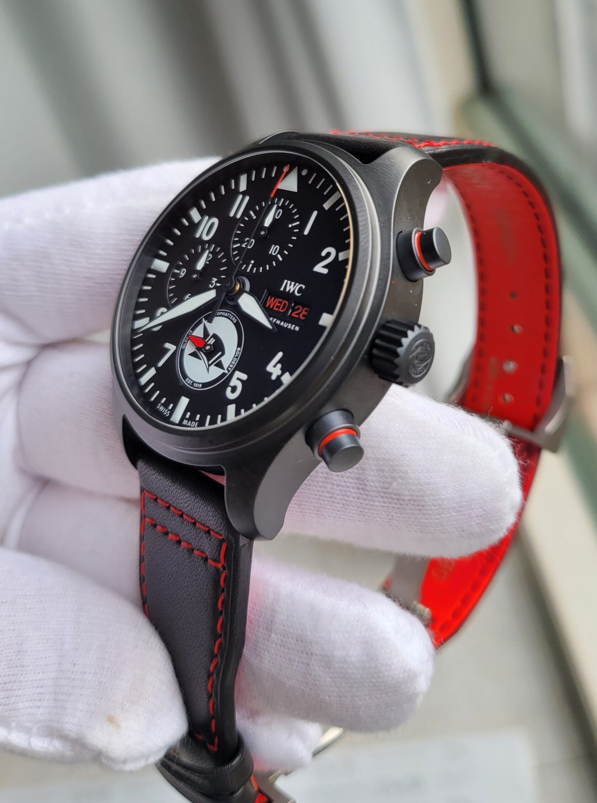 IWC Pilots Watch Chronograph “TOPHATTERS” Edition, 44.5mm Ceramic Case on IWC Strap, Reference IW389108