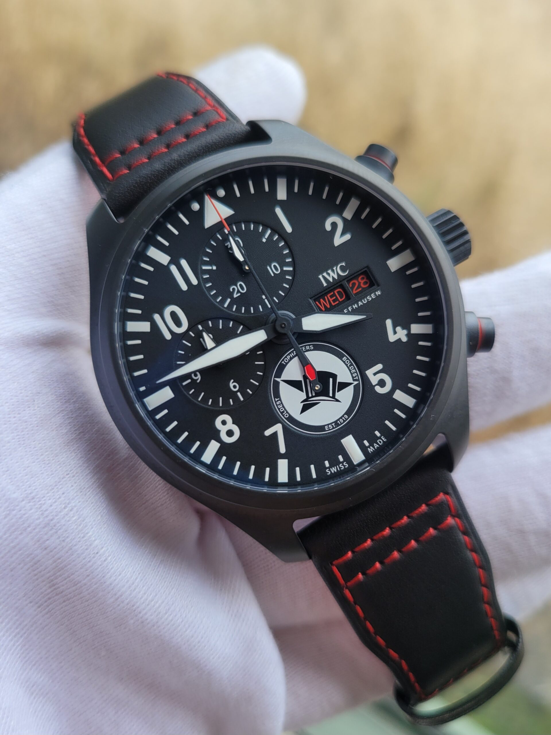 IWC Pilots Watch Chronograph “TOPHATTERS” Edition, 44.5mm Ceramic Case on IWC Strap, Reference IW389108