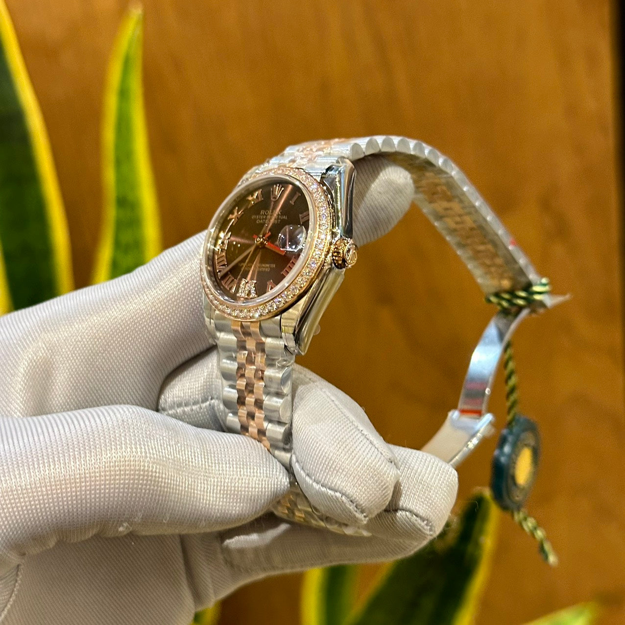 Rolex DateJust Women’s High Quality Swiss 1:1 Watch With Diamonds Chocolate Dial 31mm