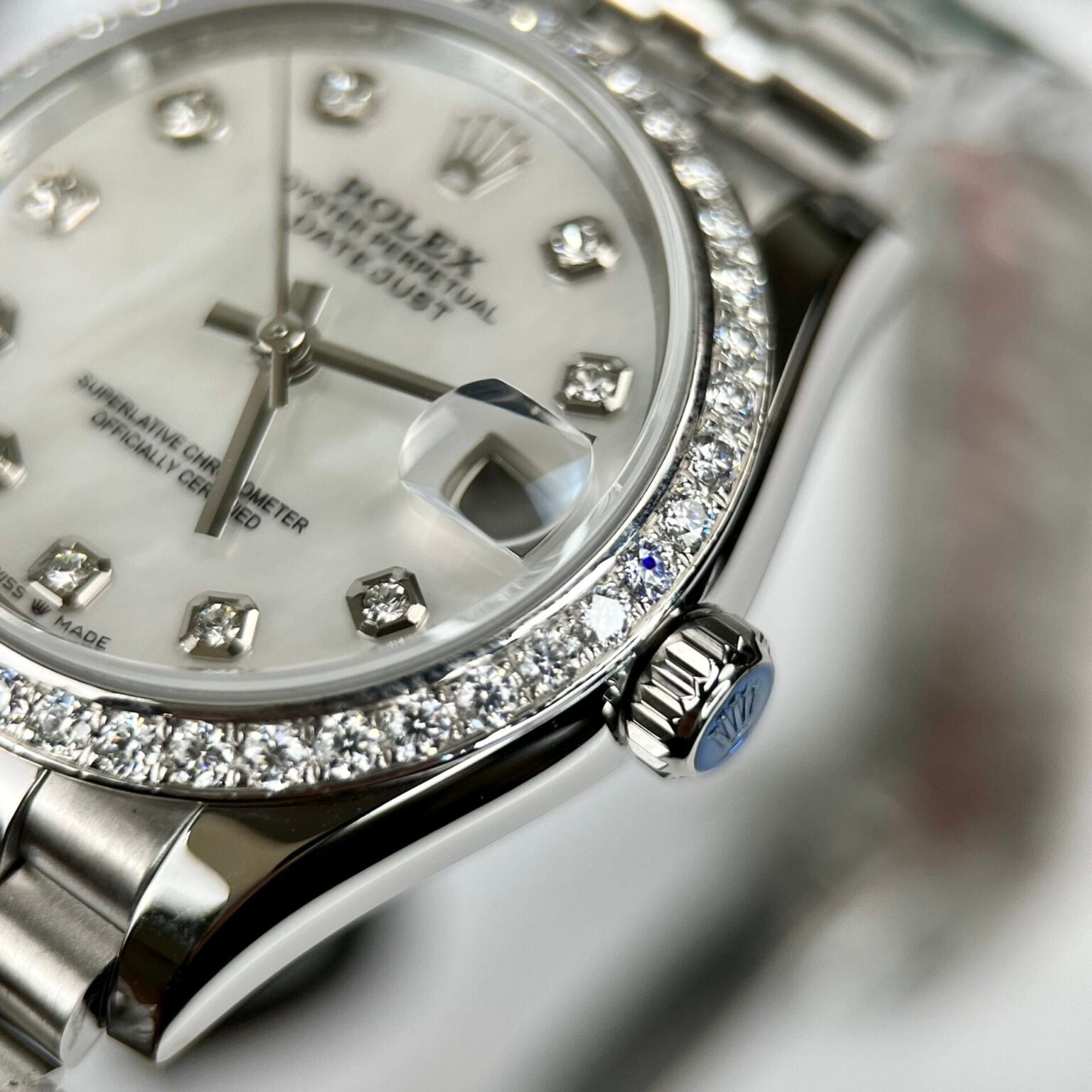 Rolex DateJust Swiss 1:1 Watch Mother Of Pearl Dial With Moissanite Bezel 31mm
