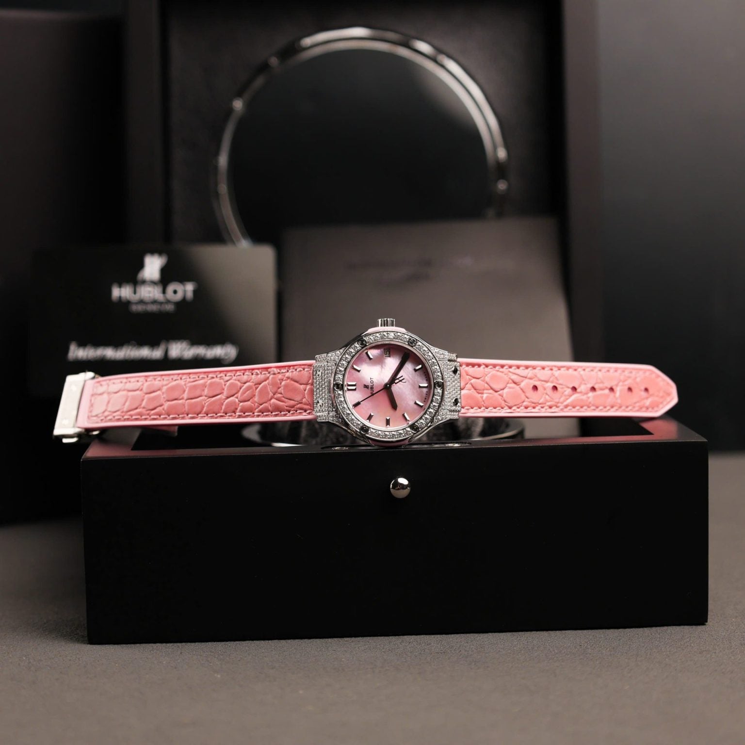 Hublot Classic Fusion Swiss 1:1 Watch Mother Of Pearl Dial + Moissanite Diamonds 33mm