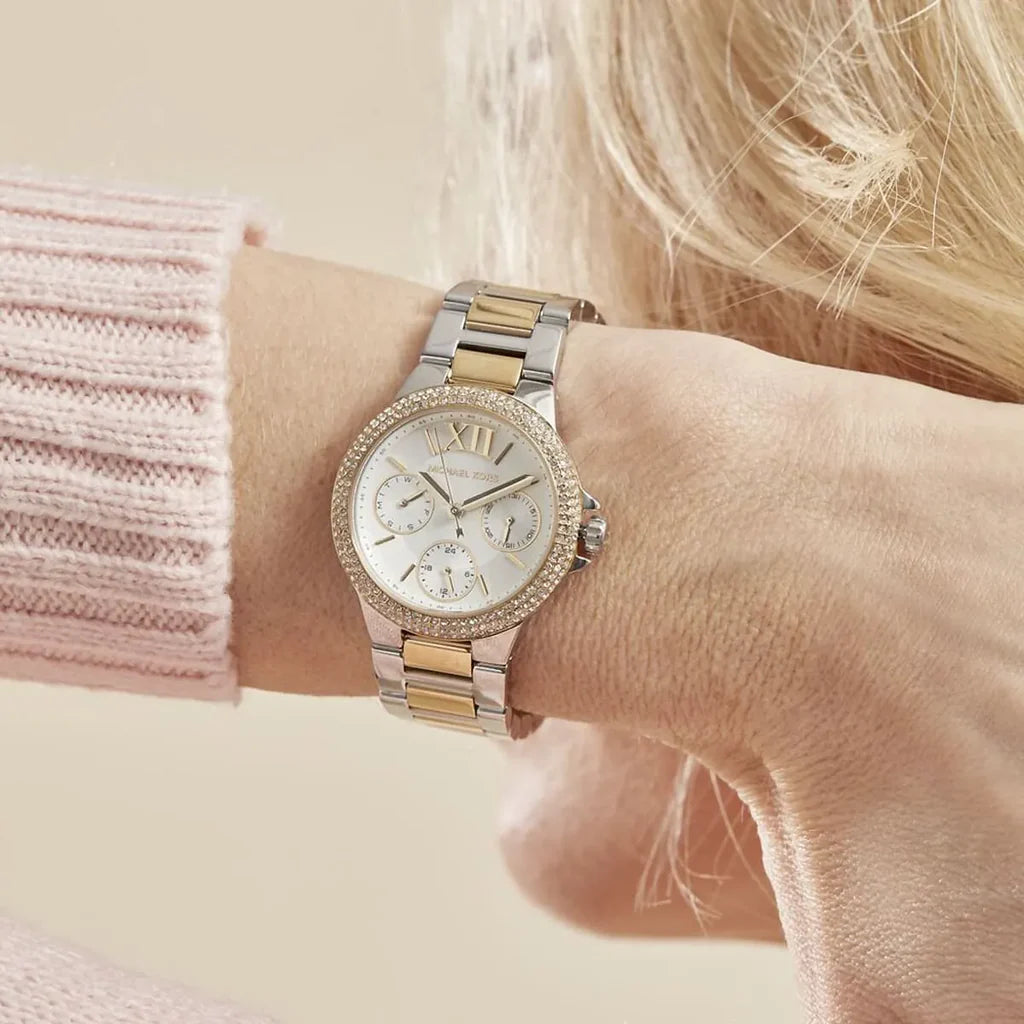 Michael Kors Camille Multifunction Silver Dial Two Tone Steel Strap Watch For Women - MK6982