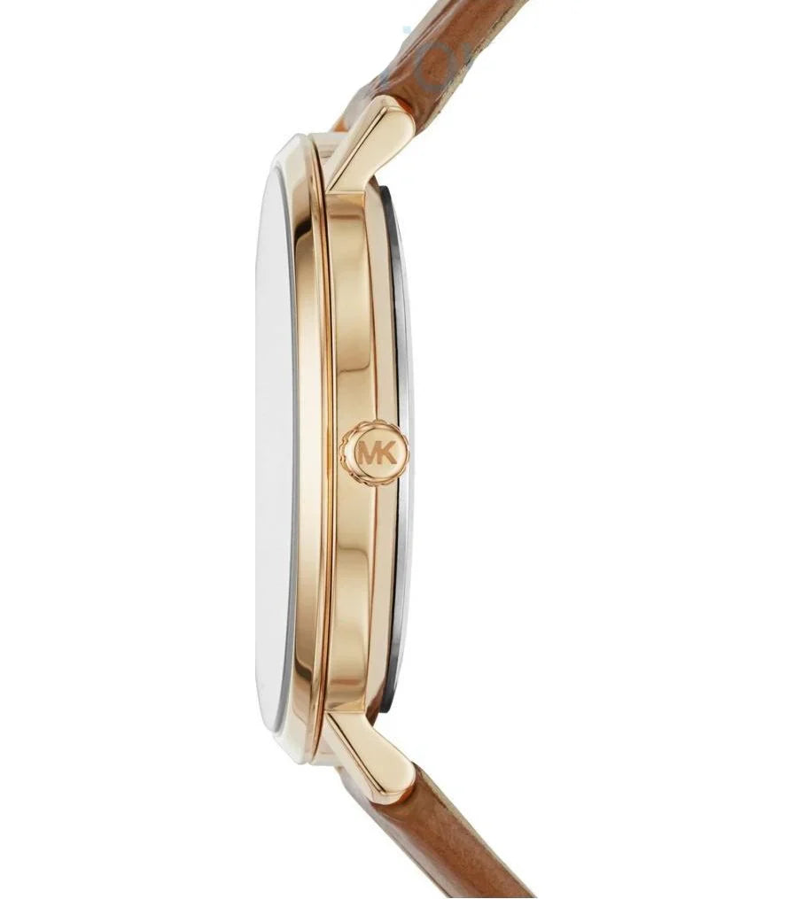 Michael Kors Jaryn Quartz Gold Dial Brown Leather Strap Watch For Women - MK2496