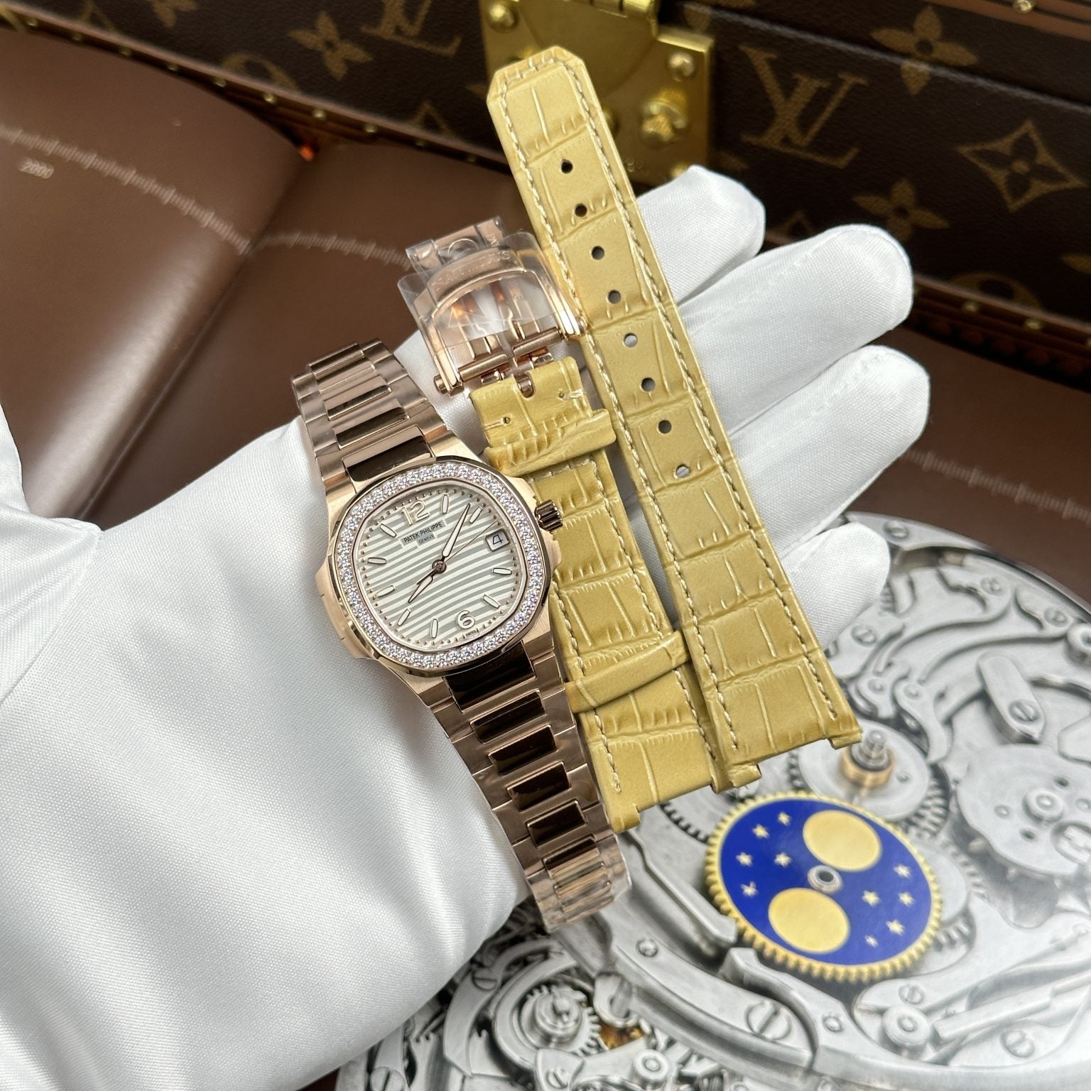 Patek Philippe Nautilus 7010 Swiss 1:1 Watch White Dial Case Rose Gold 32mm