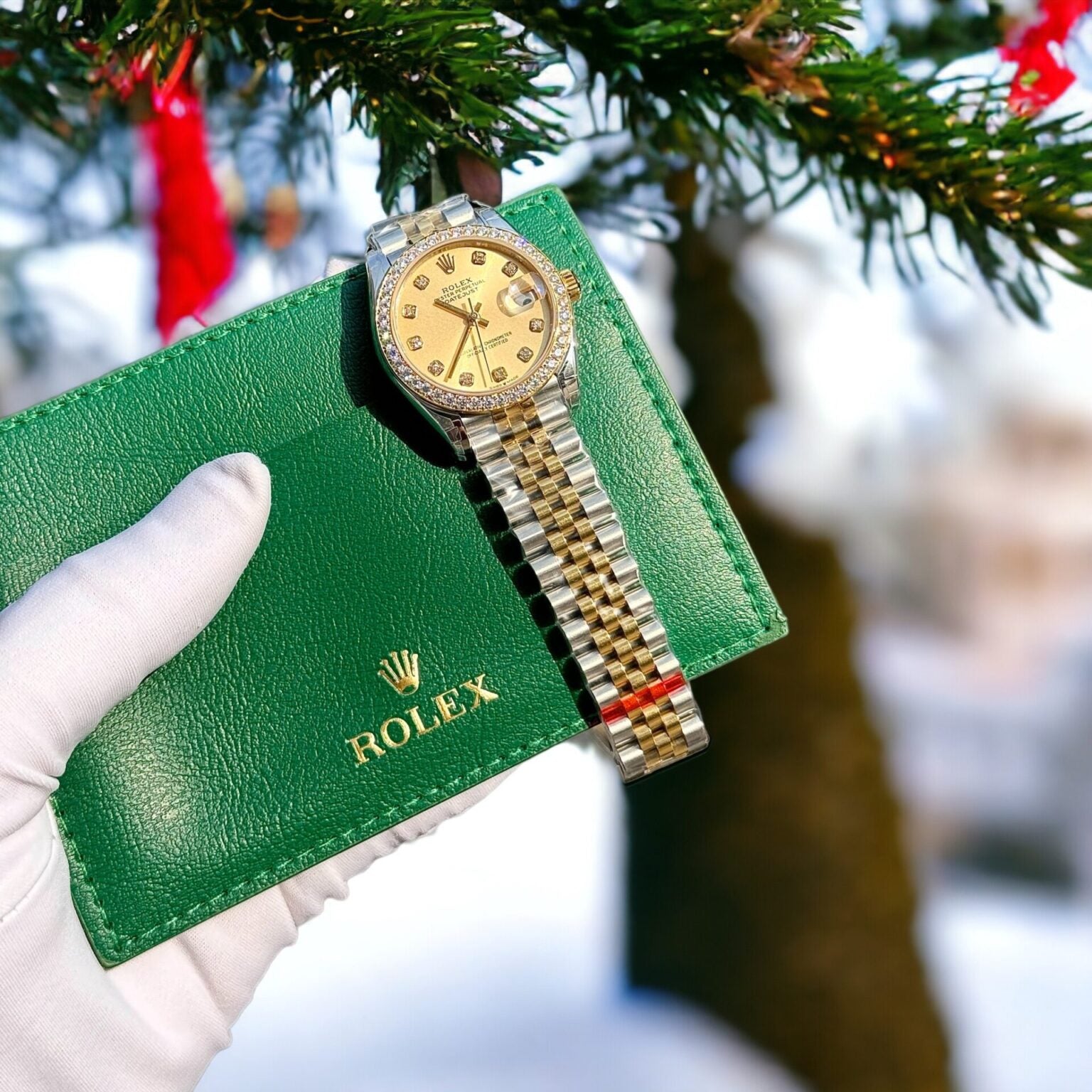 Rolex DateJust Swiss1:1 Watch With Moissanite Diamonds Yellow Dial 31mm