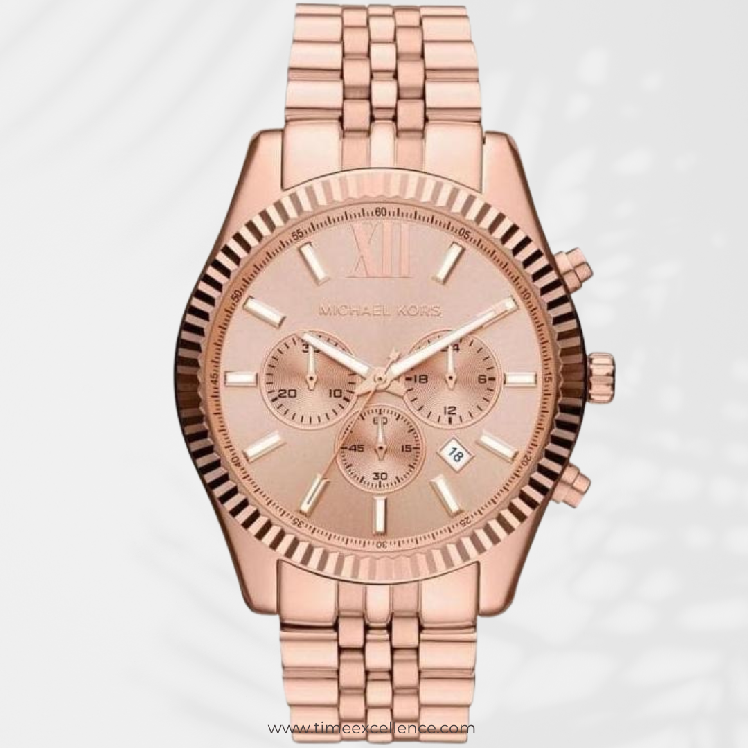 Michael Kors Lexington Rose Gold Dial Rose Gold Steel Strap Watch For Men - MK8319