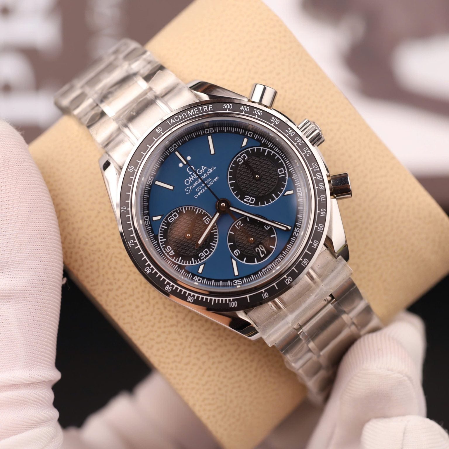 Omega Swiss 1:1 Watch Speedmaster Racing Chronograph Blue Dial Metal Wire 40mm