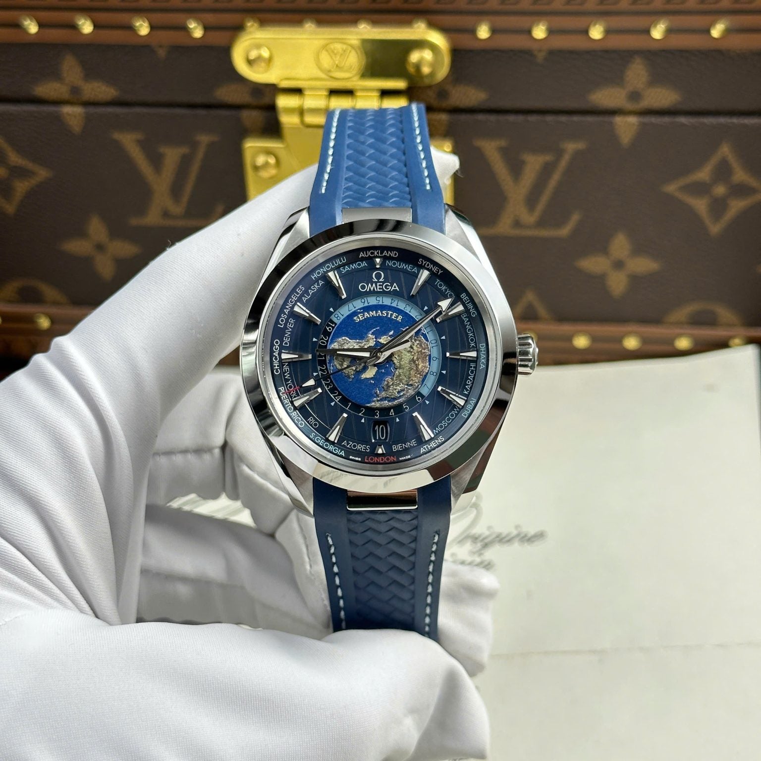 Omega Aqua Terra Worldtimer Swiss 1:1 Watch Blue Dial Rubber Strap VS Factory 43mm