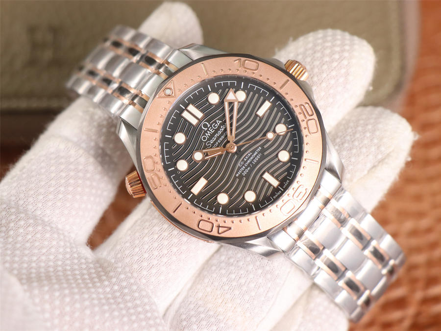 Omega Swiss 1:1 Seamaster Diver 300 M Steel Rose Bezel 8806 ETA
