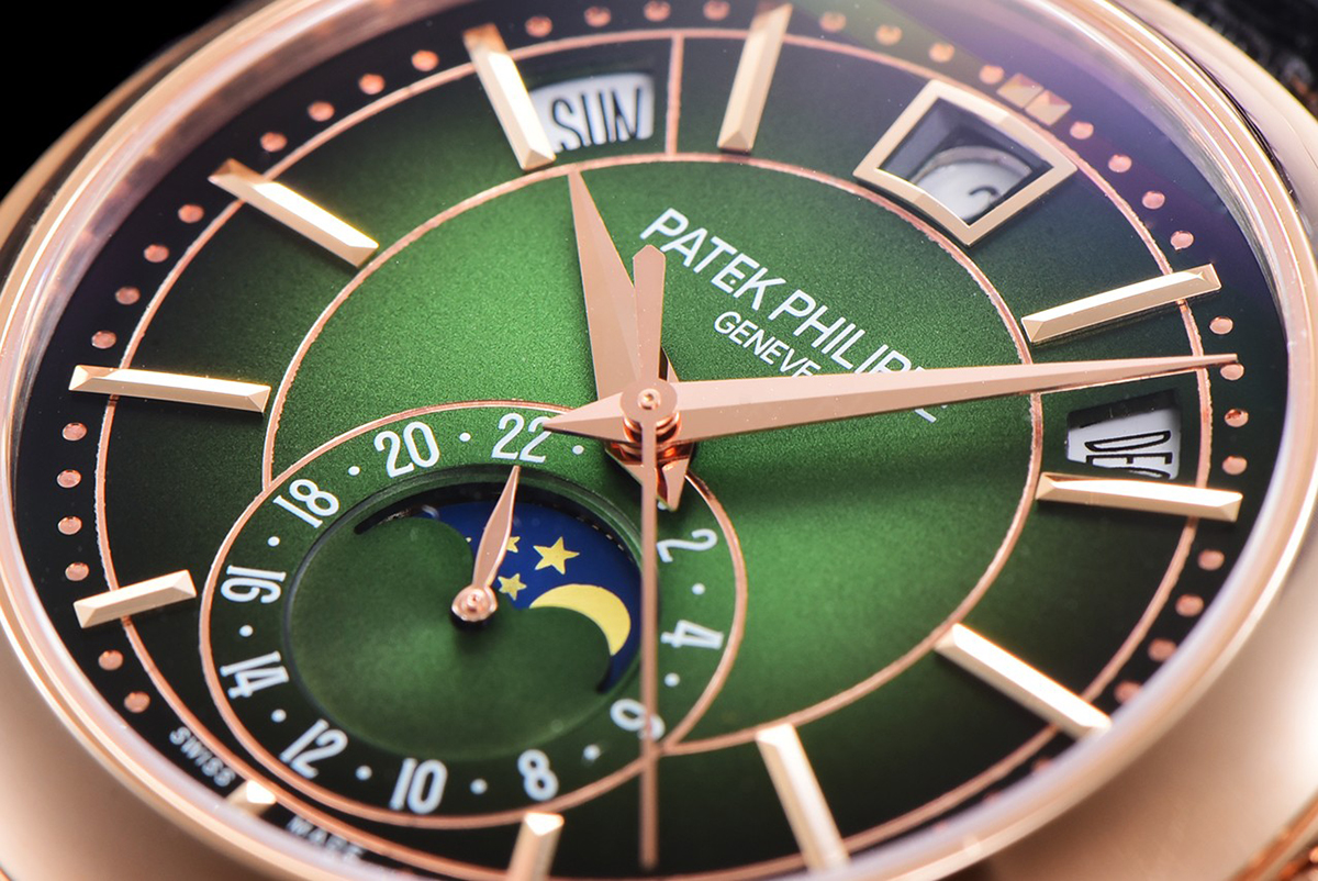 Patek Philippe Complications 5205R-011 Green Dial Rose Gold Leather Replica GRF 40mm
