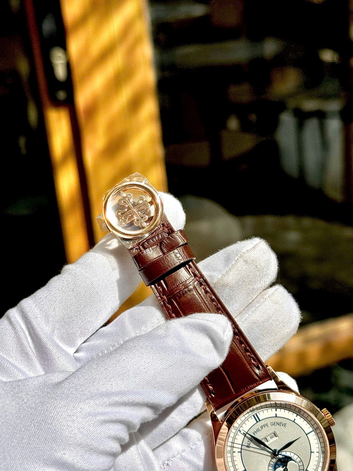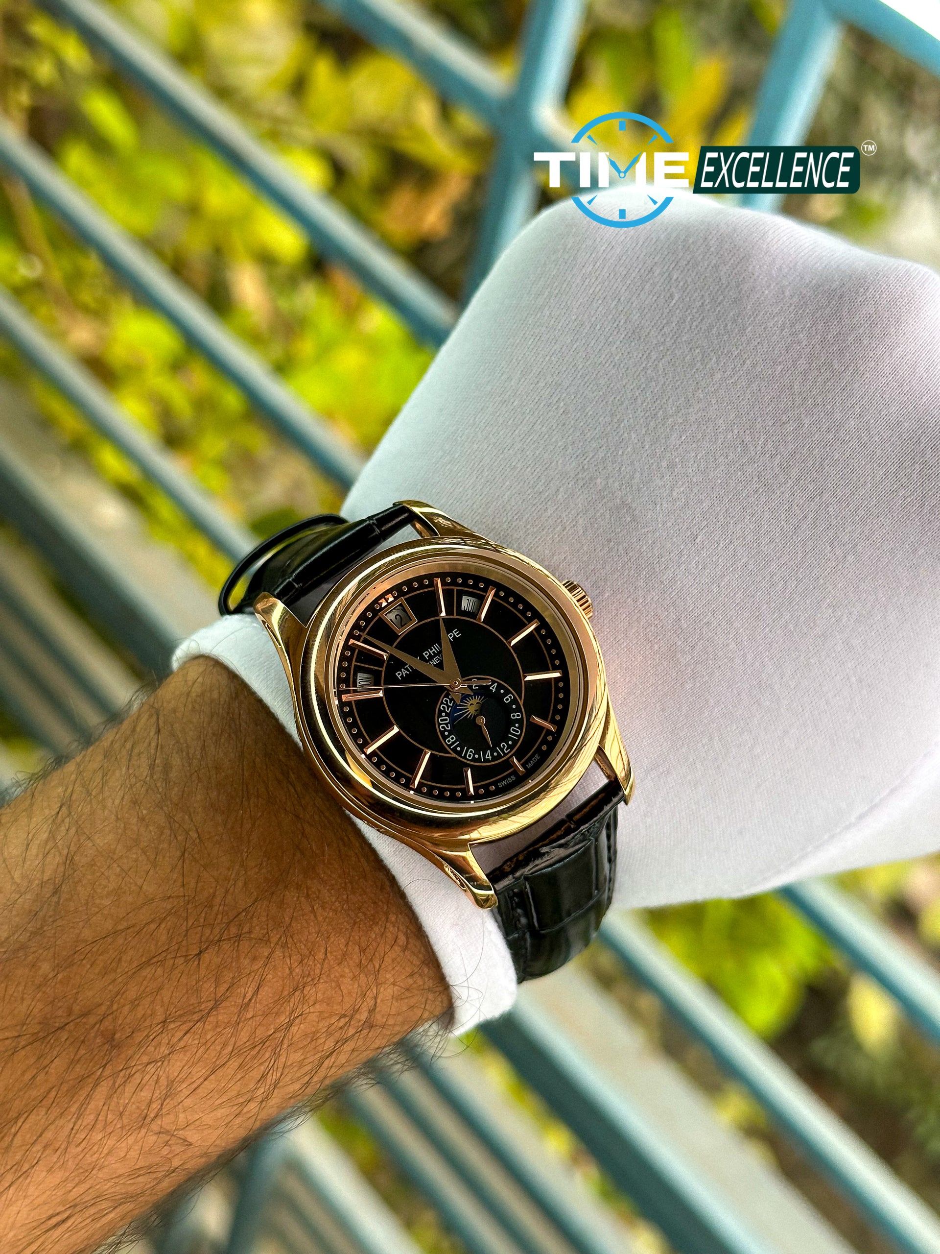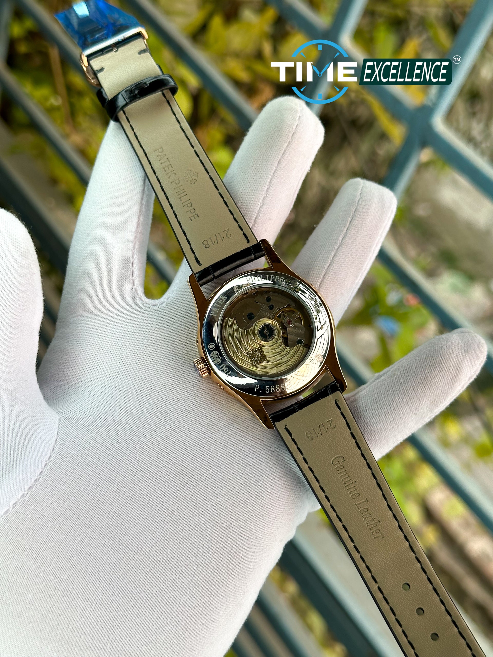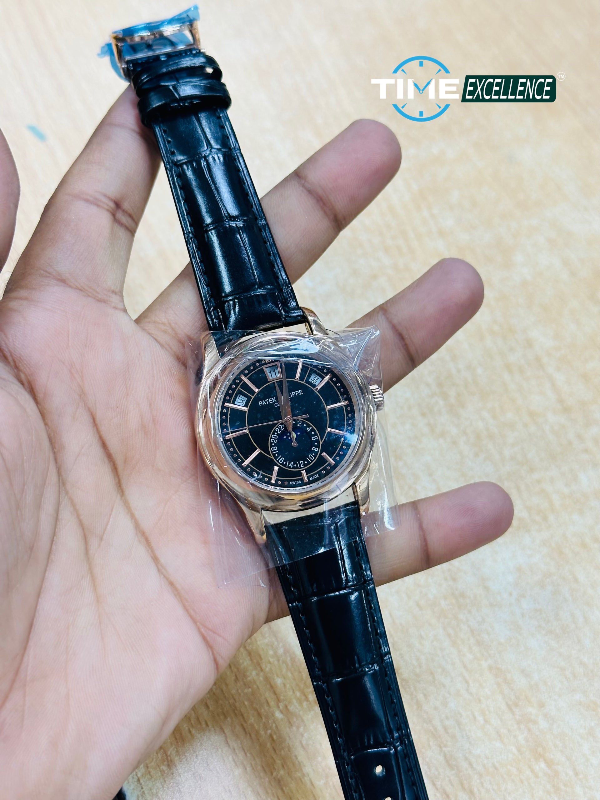 Patek Philippe Complications 5205R-010 Annual Calendar Moon Phases 40Mm Rose Gold Black Leather Straps Men’S Watch