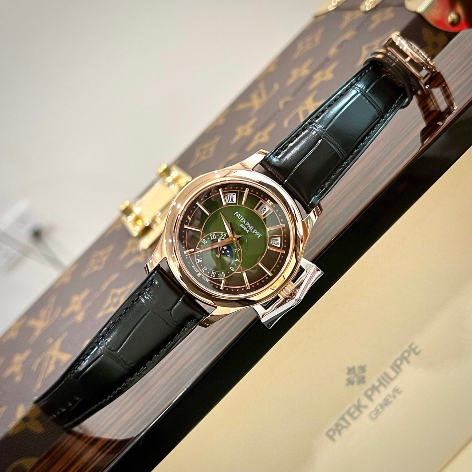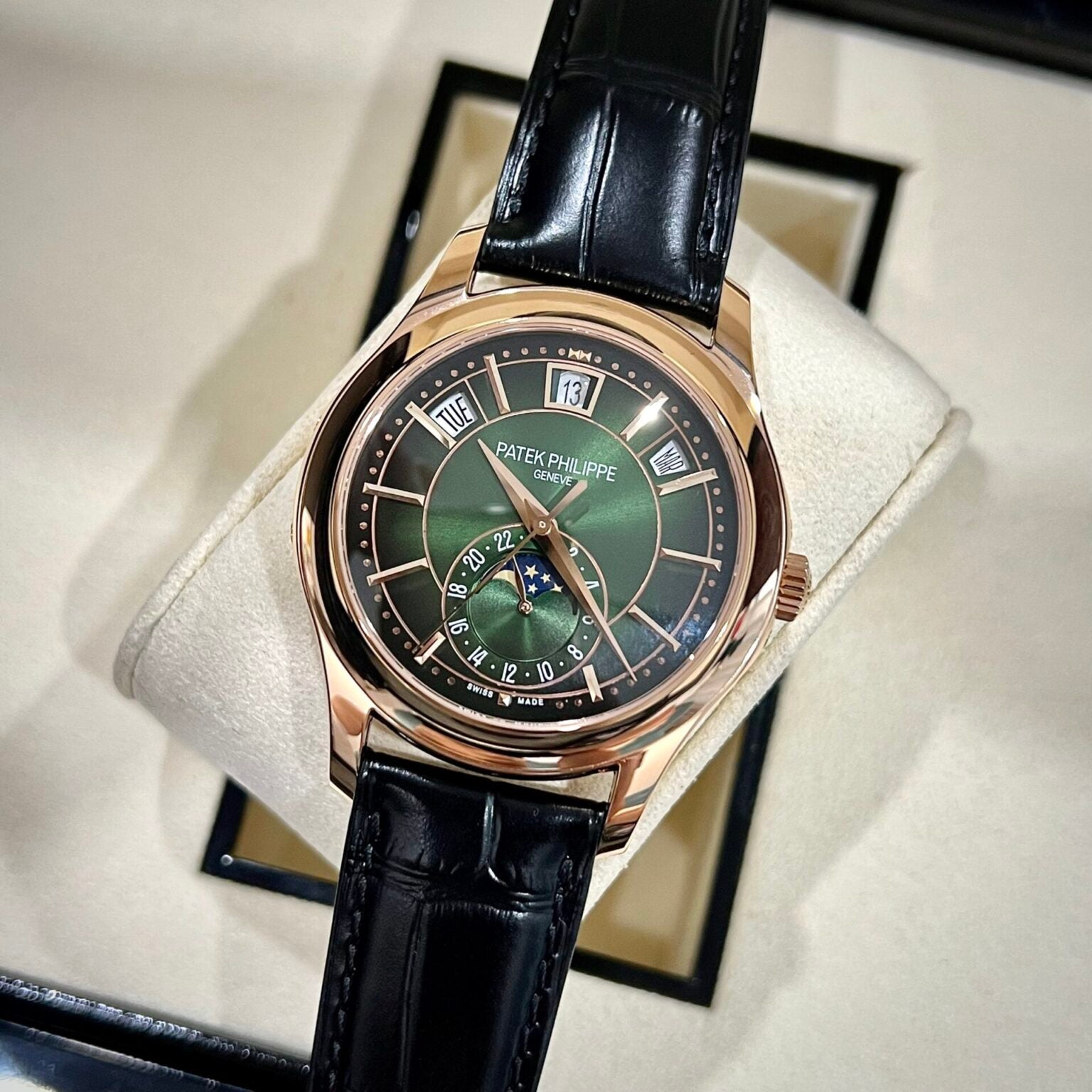 Patek Philippe Complications 5205R-011 Green Dial Rose Gold Leather Replica GRF 40mm