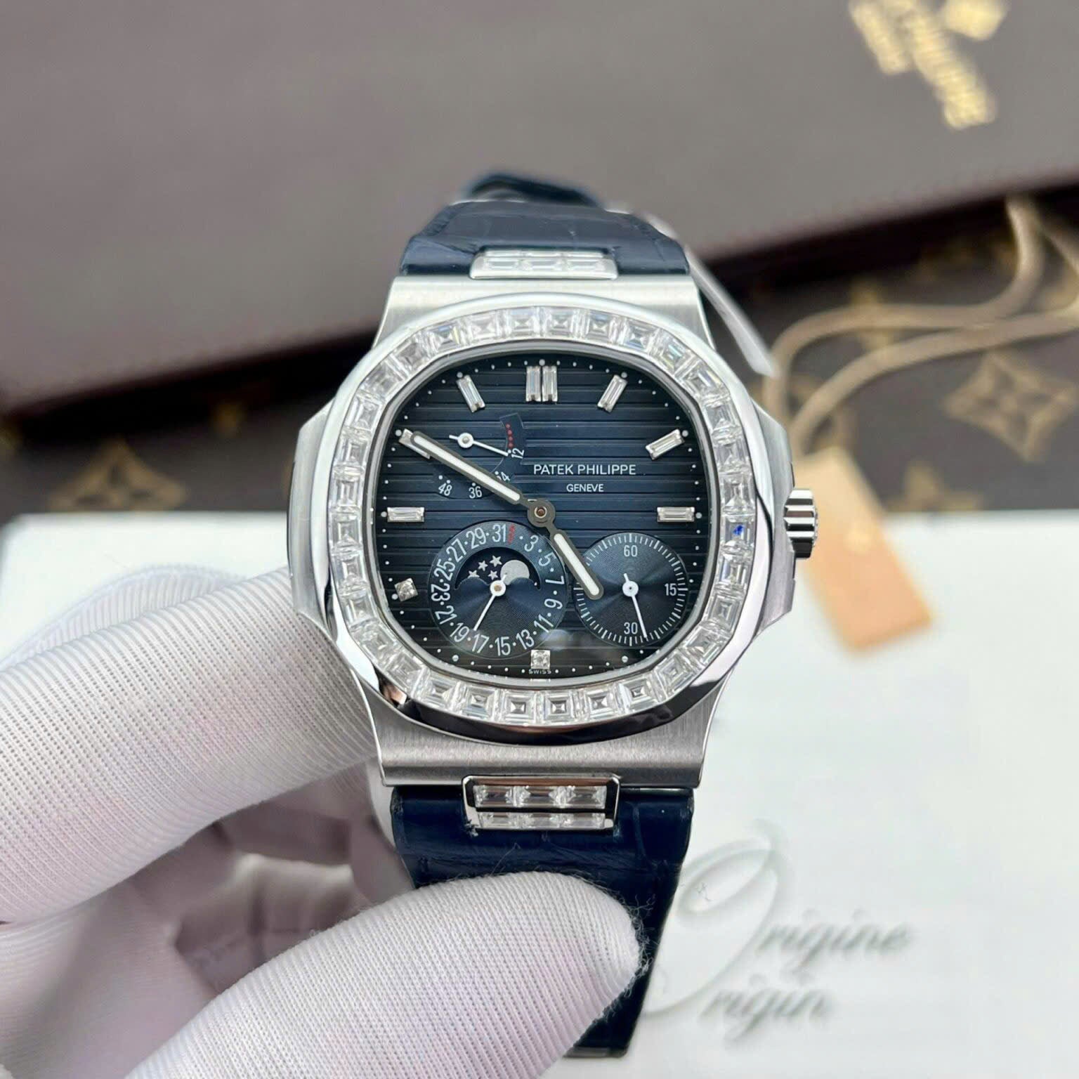 Patek Philippe Swiss 1:1 Nautilus 5724G Customs Moissanite Diamonds Baguette PPF Factory 40mm