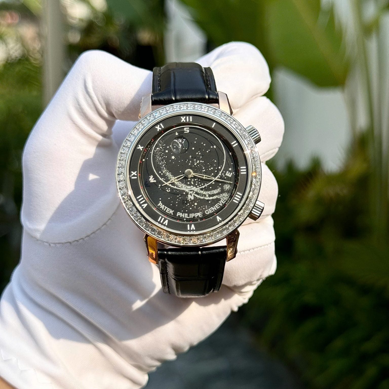 Patek Philippe Swiss 1:1 Watch Grand Complications 6104G Black Dial Bezel Stone Red 40mm