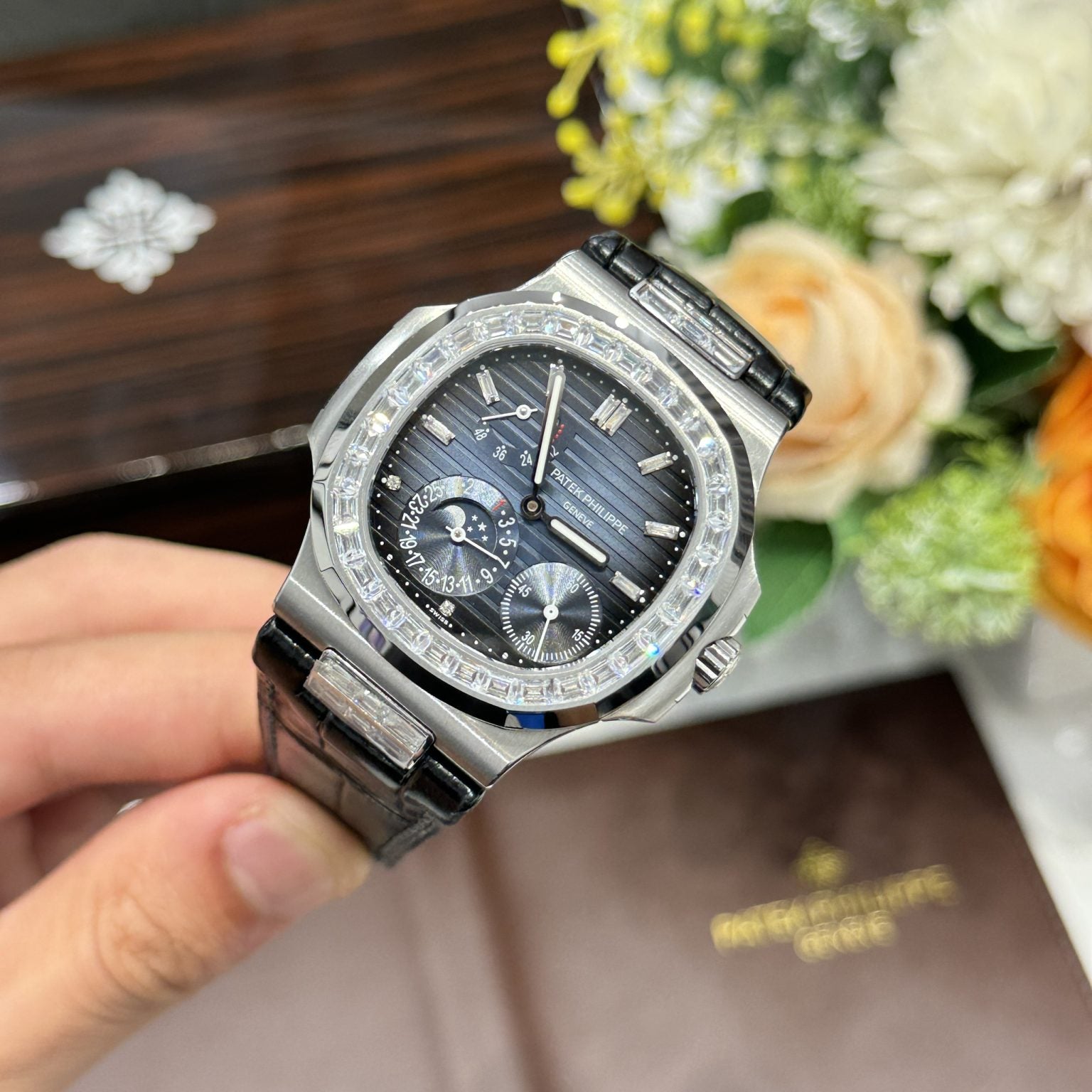 Patek Philippe Swiss 1:1 Nautilus 5724G Men’s Diamond-Set Watch Leather Strap GR Factory 40mm