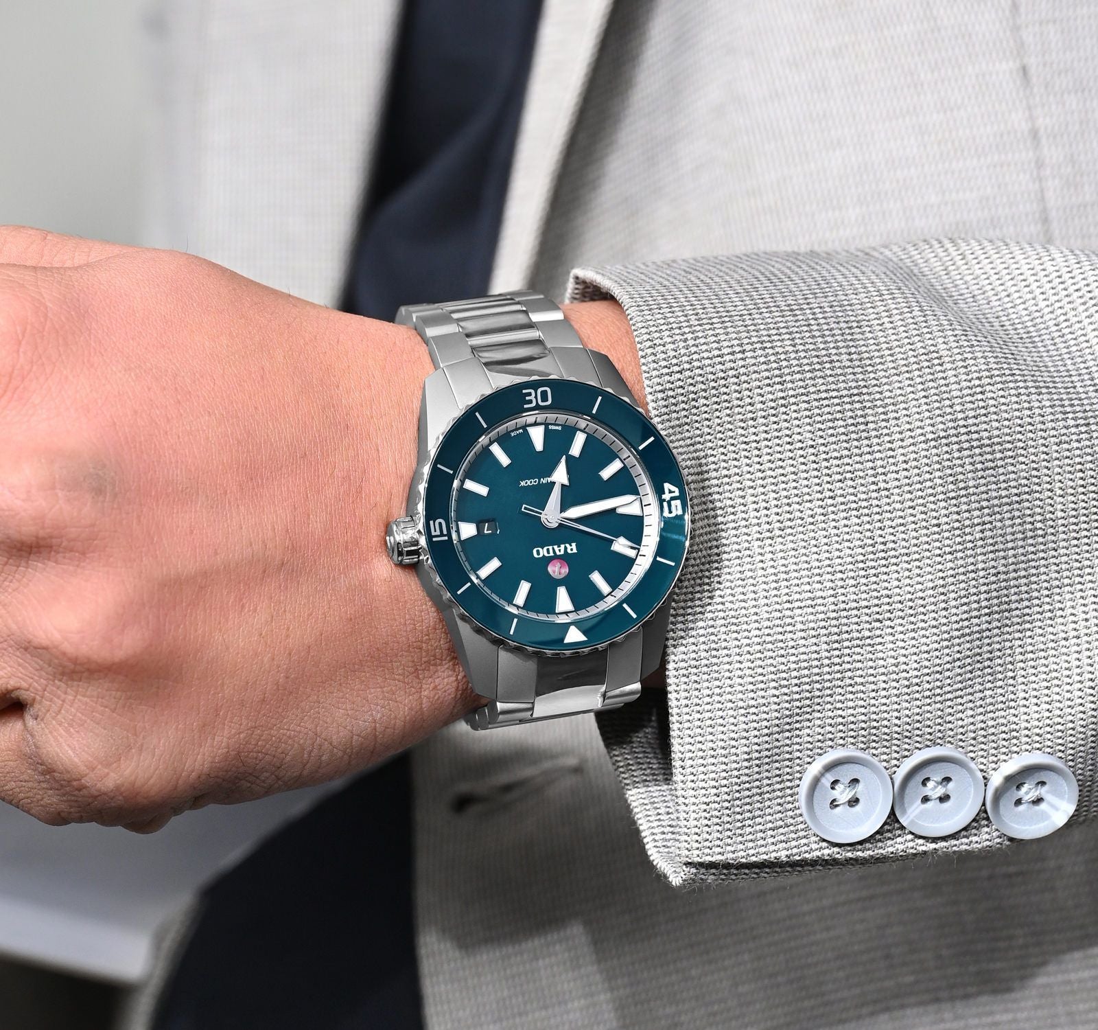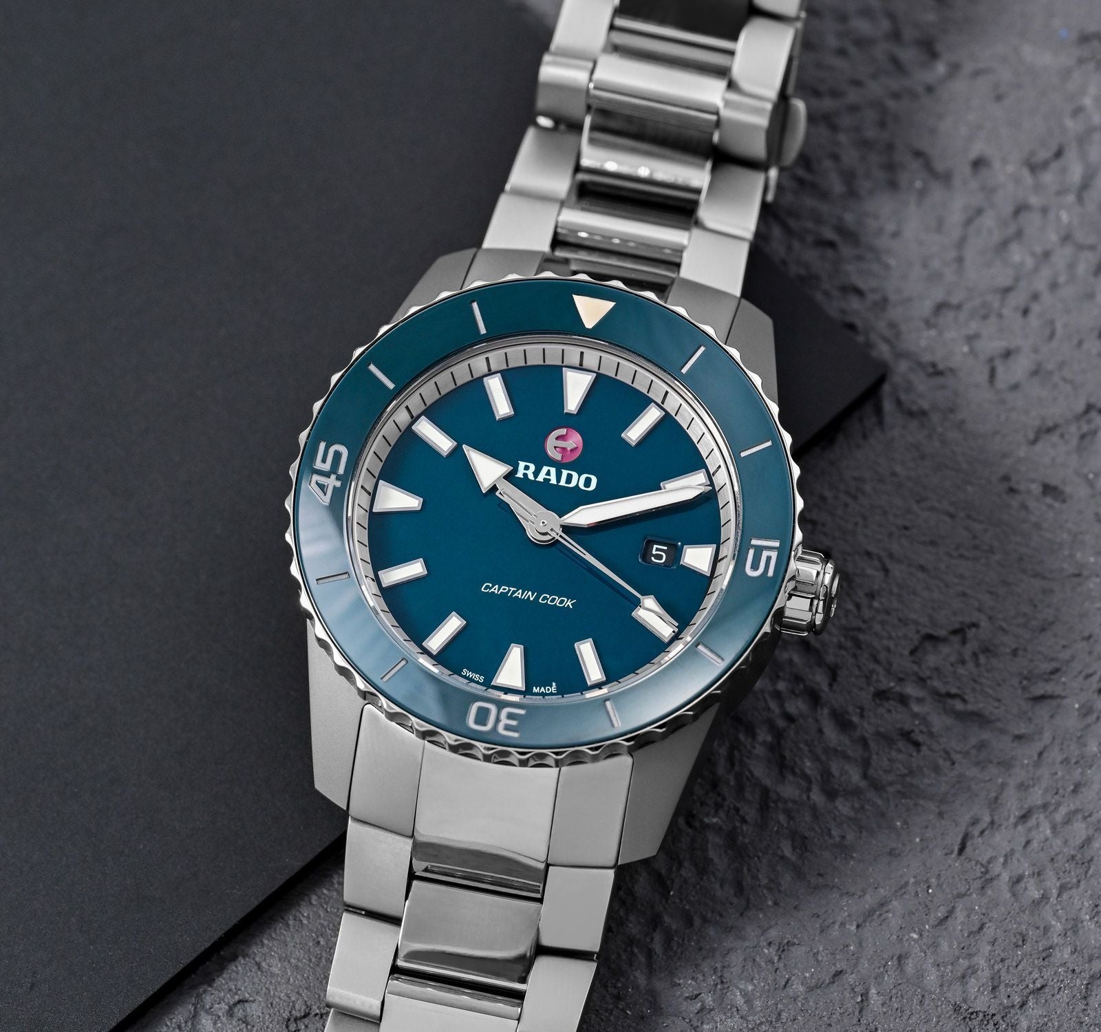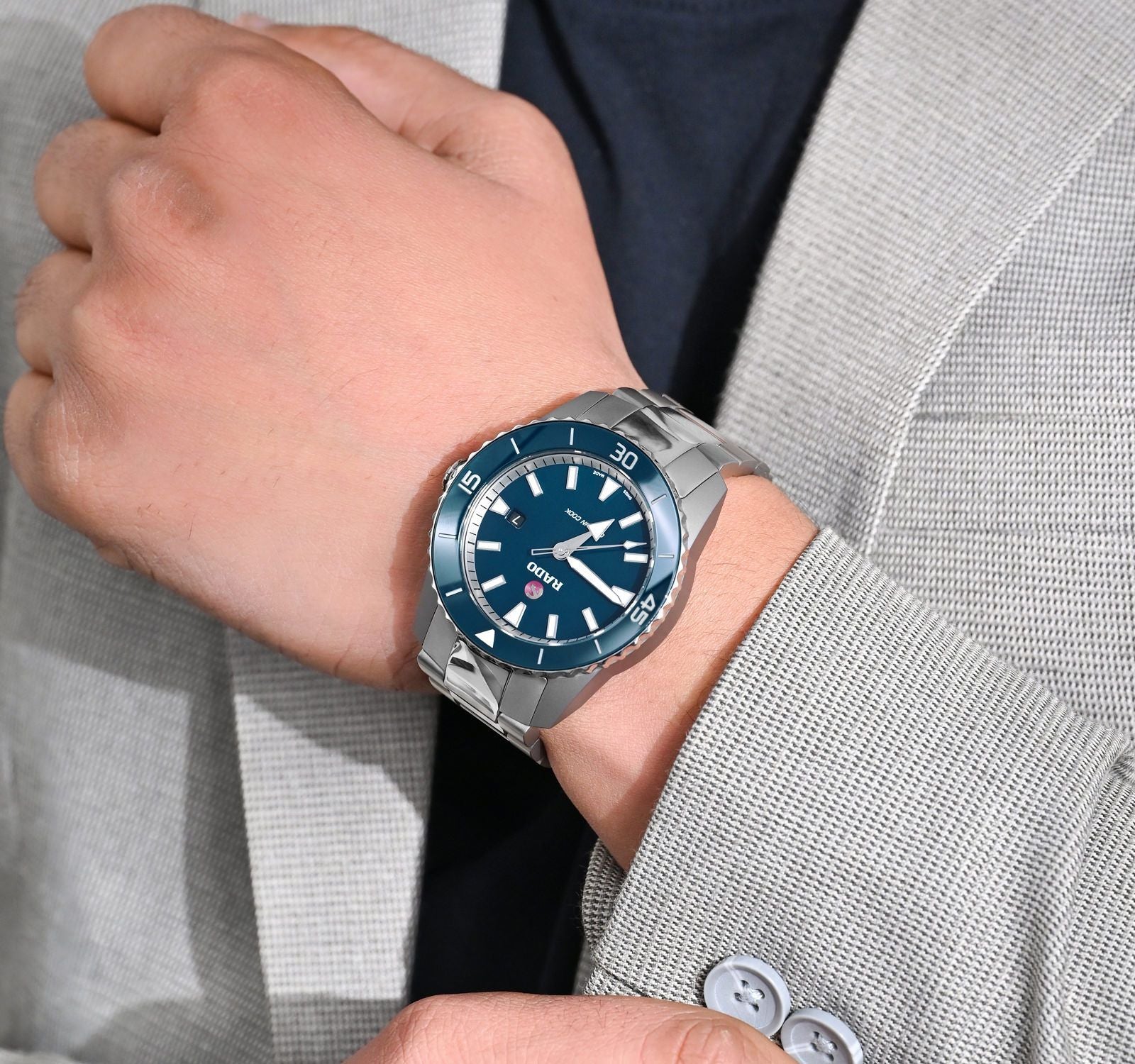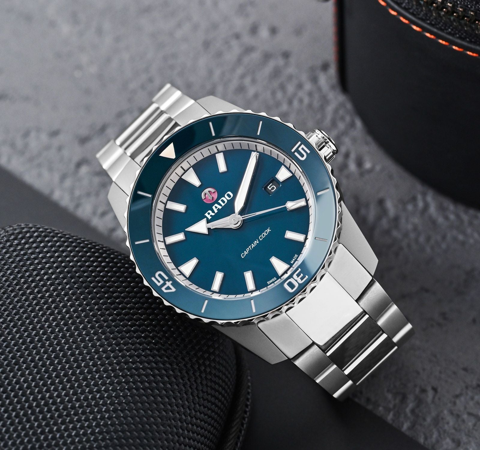 Rado's celebrated sport watch - Captain Cook - exudes the classic charm and soothing appeal of the colour blue that adorns its dial