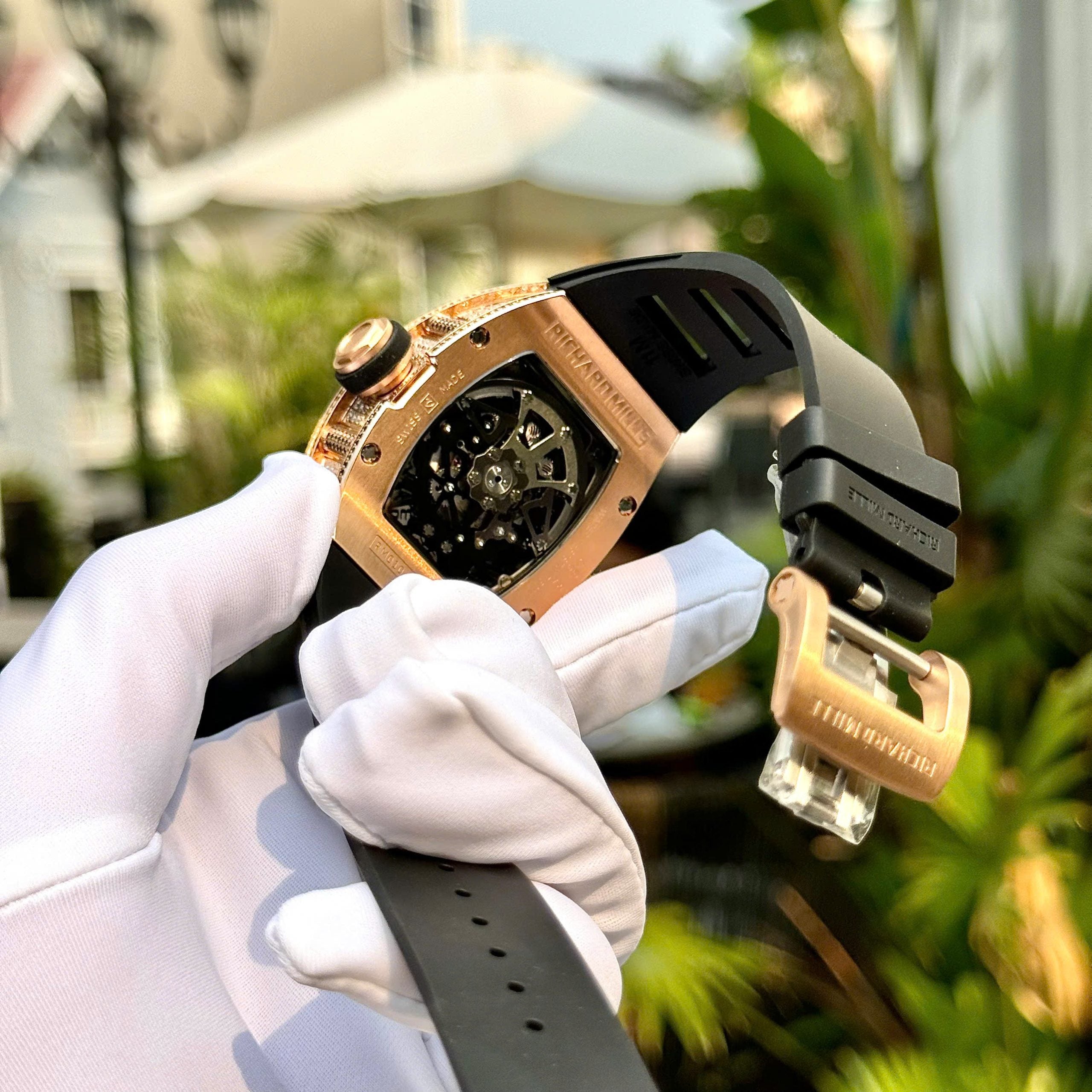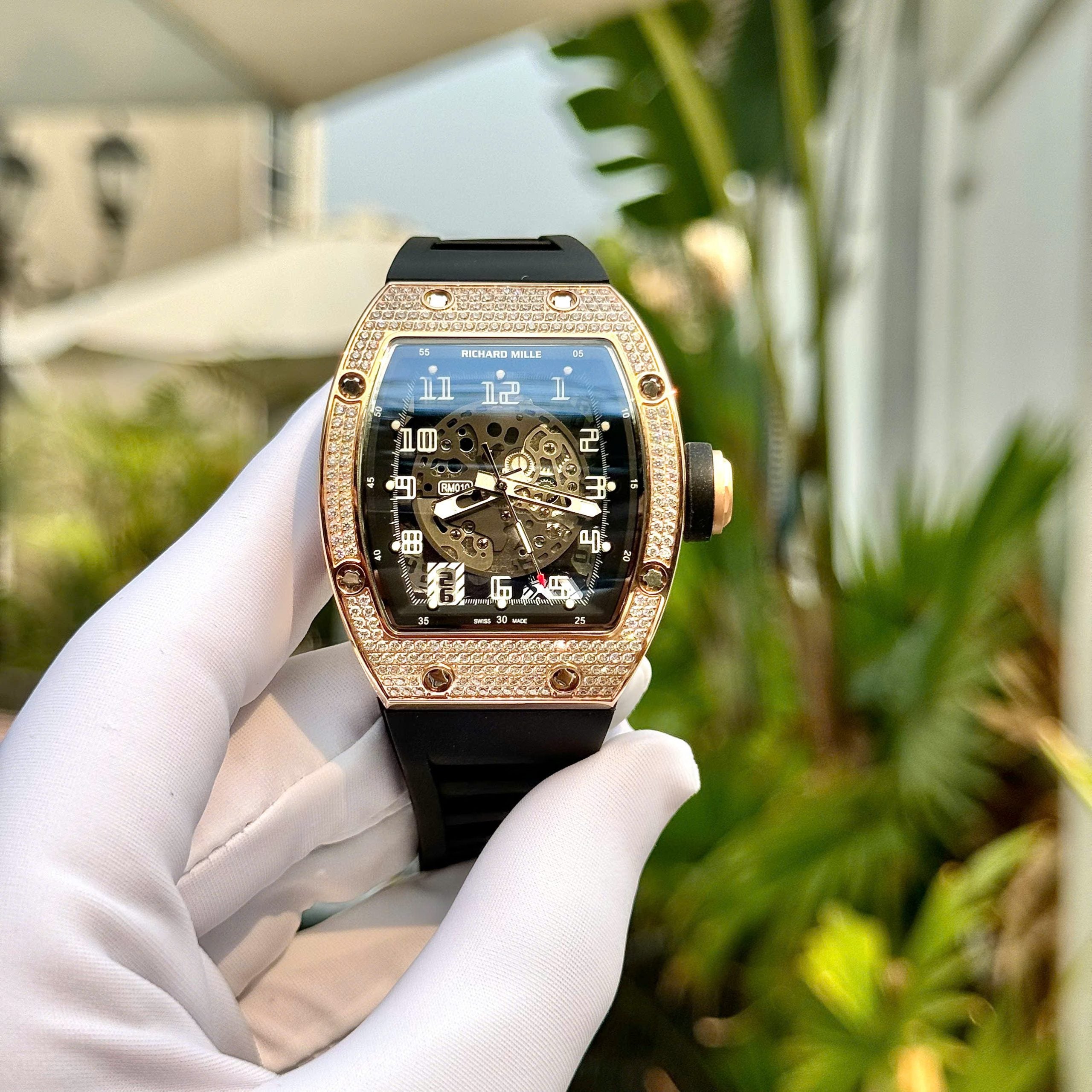 Richard Mille RM010 Full Diamonds Rose Gold Swiss 1:1 Watch Automatic Movement 40mm