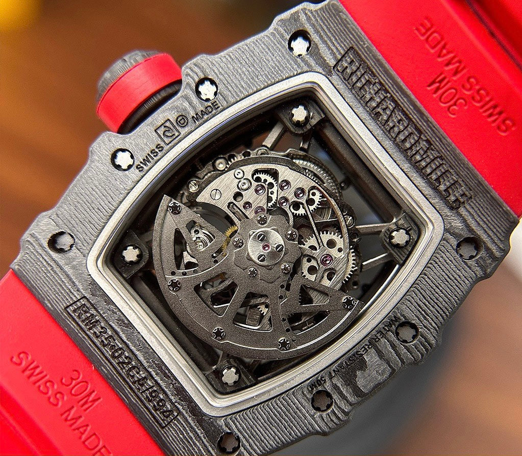 Richard Mille RM35-02 Swiss 1:1 Watch Skeleton Red Rubber Strap 44mm