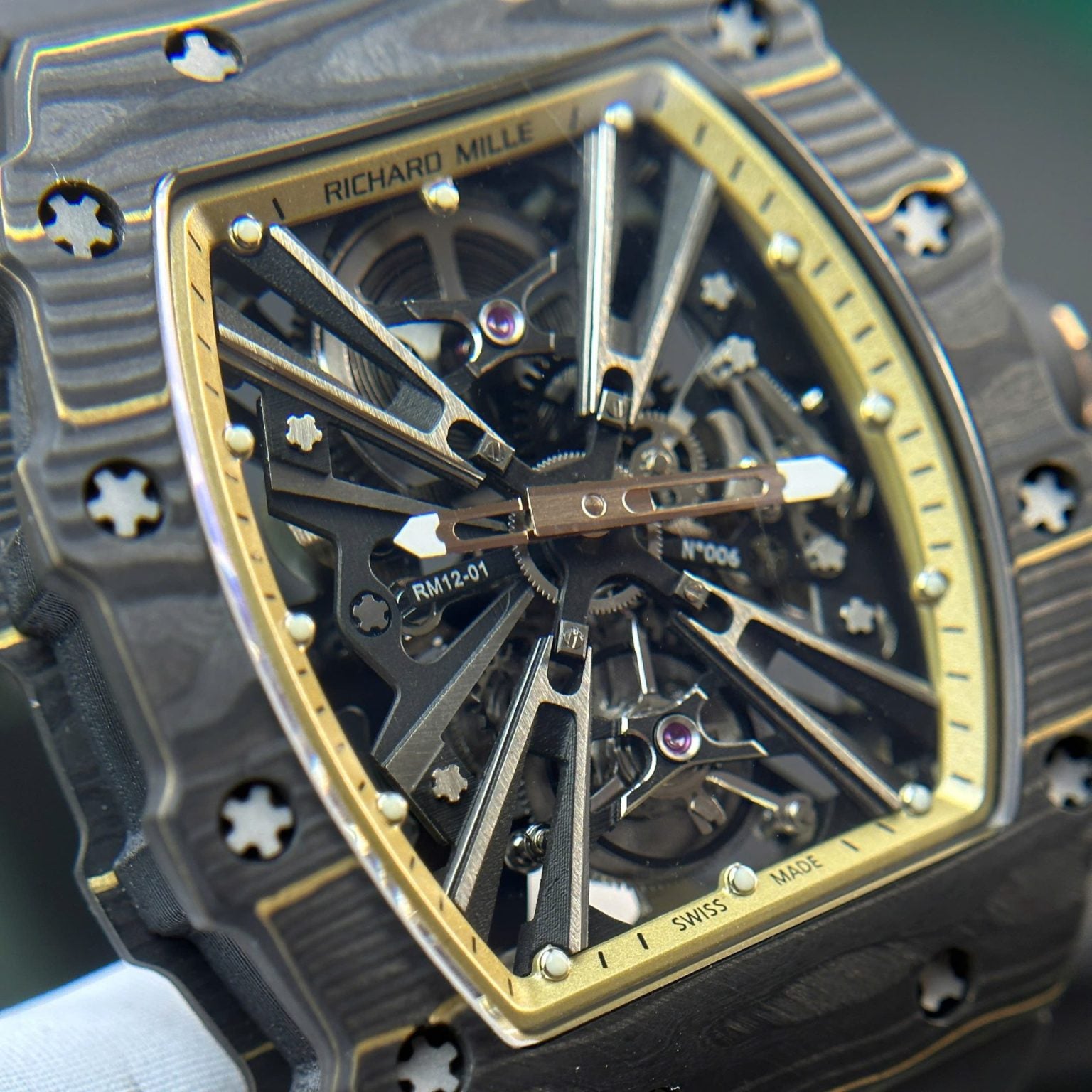 Richard Mille Tourbillon RM12-01 Swiss 1:1 Watch Carbon TPT Super Light 39.3x48mm