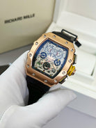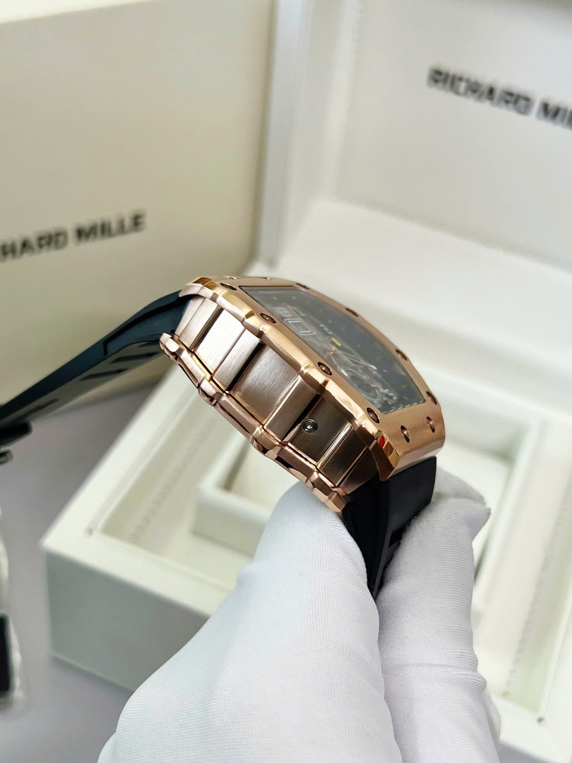Richard Mille RM11-03 Rose Gold Super Swiss 1:1 Watches Black Rubber Strap 45mm