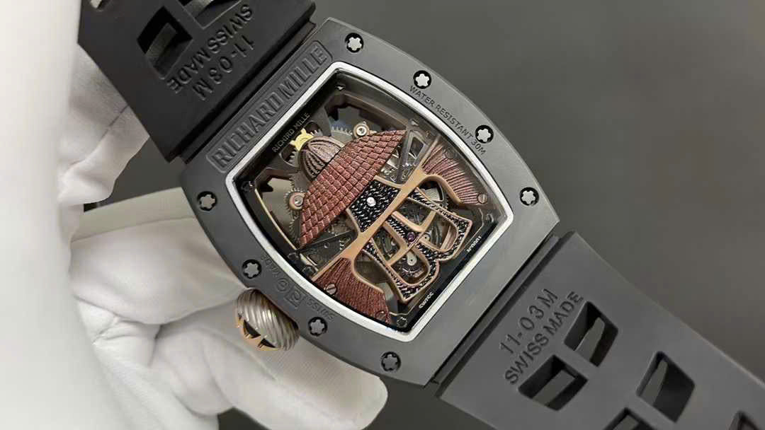 Richard Mille RM052 Skull Stainless Steel Swiss 1:1 Watch Black Rubber Strap 42mm