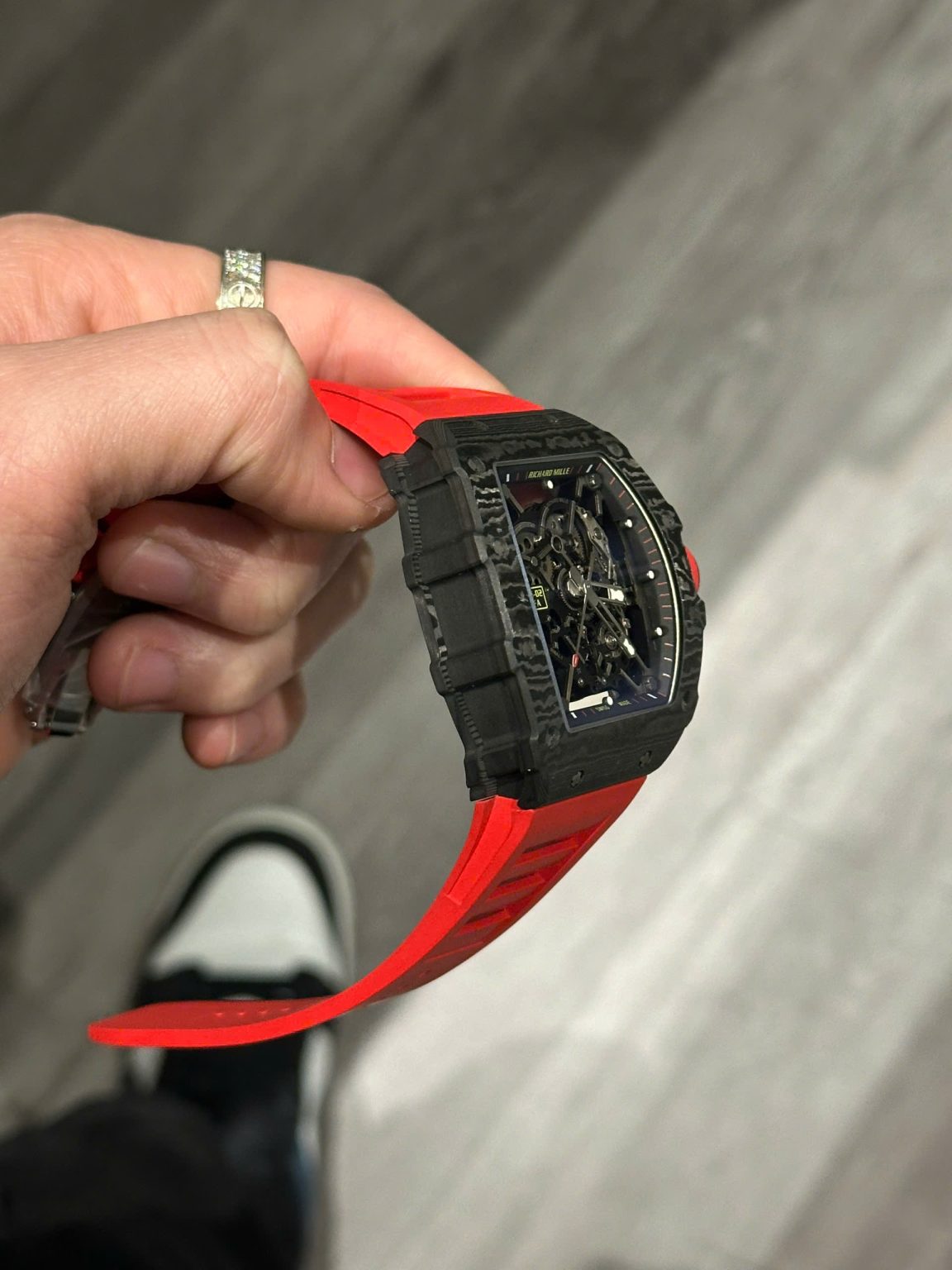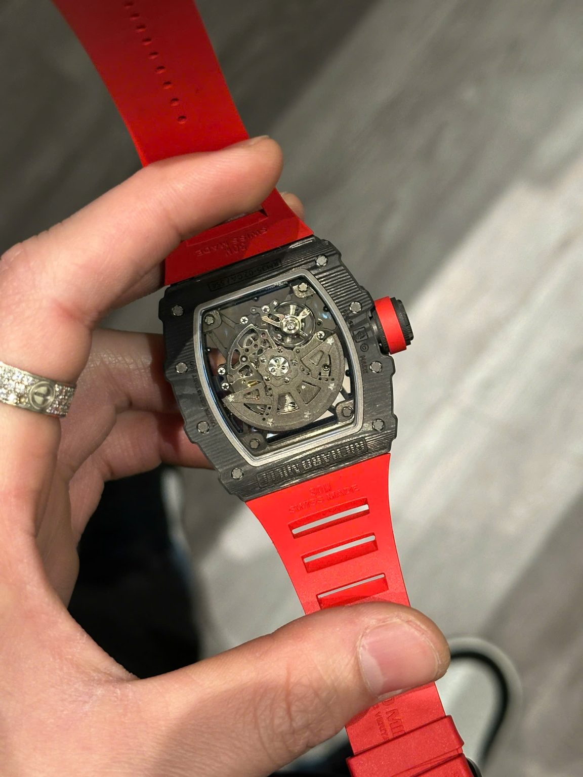 Richard Mille RM35-02 Carbon Swiss 1:1 Watch BBR Factory Red Rubber Strap 45mm