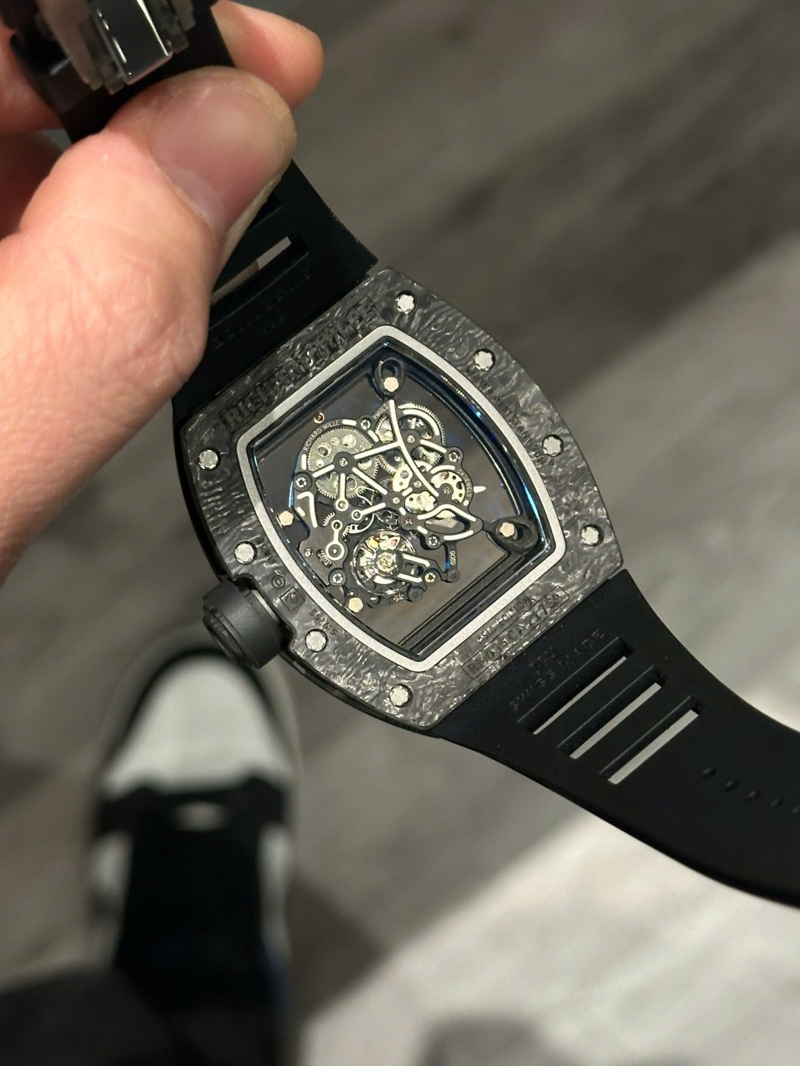 Richard Mille RM055 Carbon Swiss 1:1 Watch Black Rubber Strap BBR Factory 42.7×49.9mm