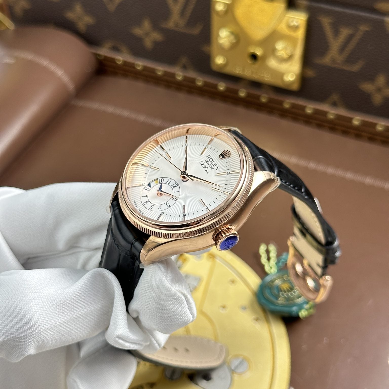 Rolex Cellini Dual Time 50525 Rose Gold Swiss 1:1 White Dial Leather Strap KZ Factory 39mm