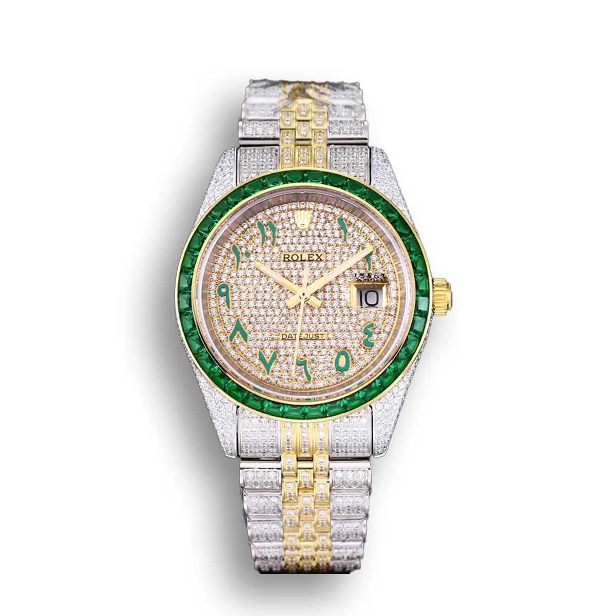 This watch stands out because of the show-stopping element—the full-diamond yellow gold bezel—which turns heads. Designed from robust Oystersteel, the 41mm casing is evidence of Rolex’s dedication to beauty and robustness. Collectors who appreciate cultural distinctiveness in their watches choose the Arabic dial as it accentuates its exotic charm.