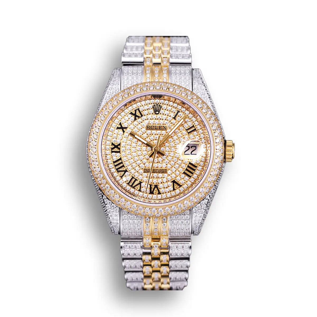 - Set into the luxurious dial, glittering diamonds naturally contrast with the conventional Roman numeral markers, therefore blending modern luxury with classic style.