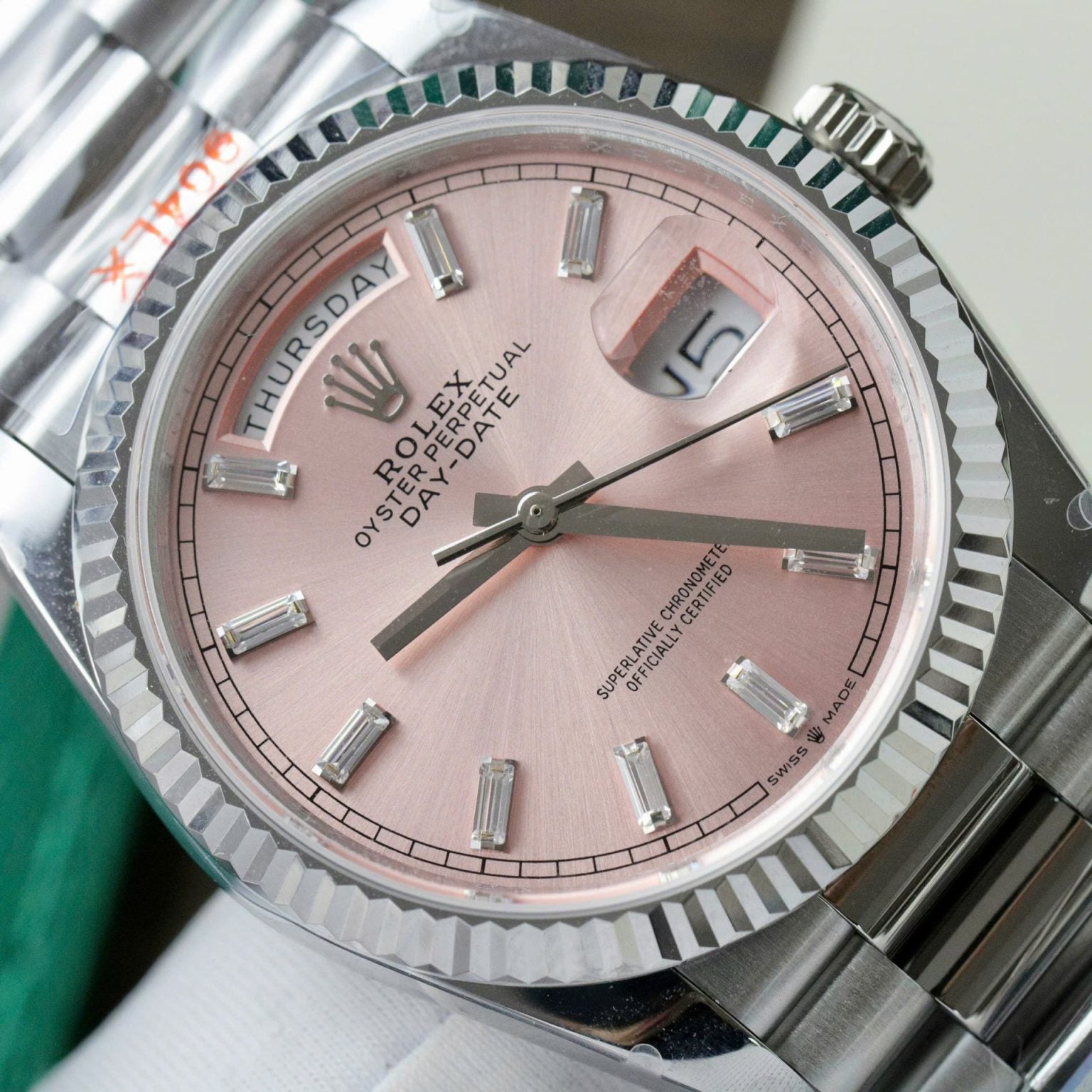Rolex Day-Date 128236 Pink Dial Swiss 1:1 Watch Weight 158 Grams QF Factory 36mm