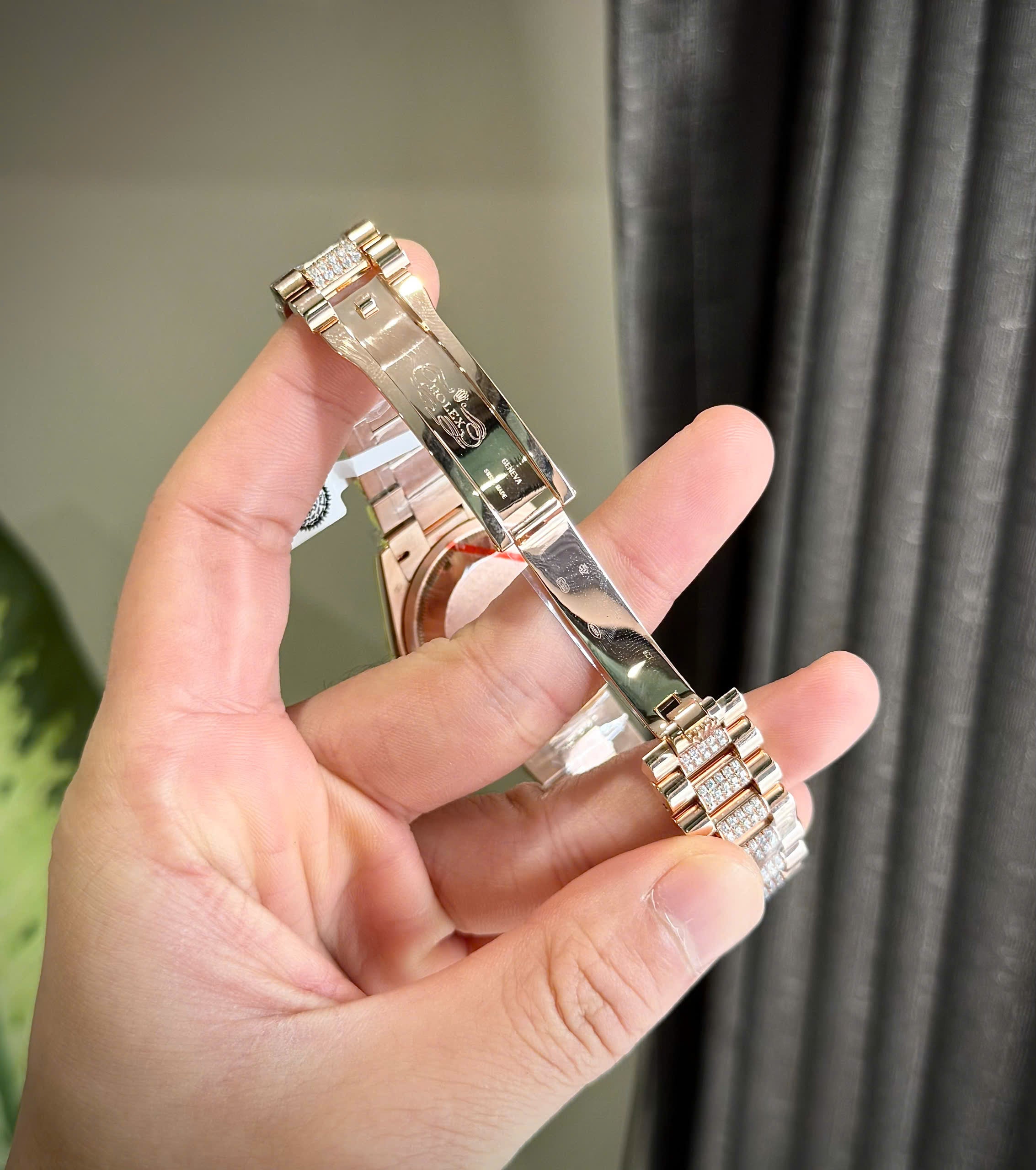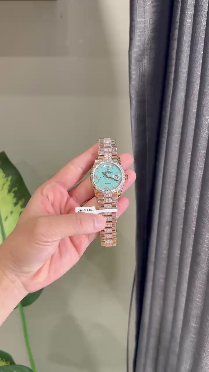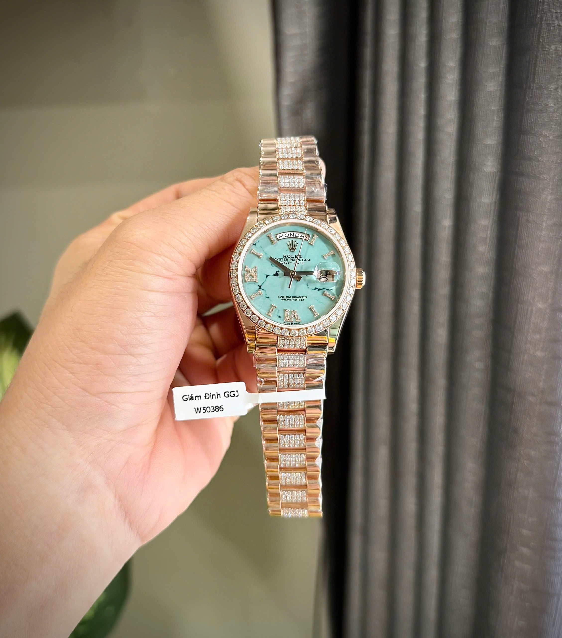 Rolex Day-Date 128345RBR Turquoise Dial Gold Wrapped with Moissanite Diamonds 36mm