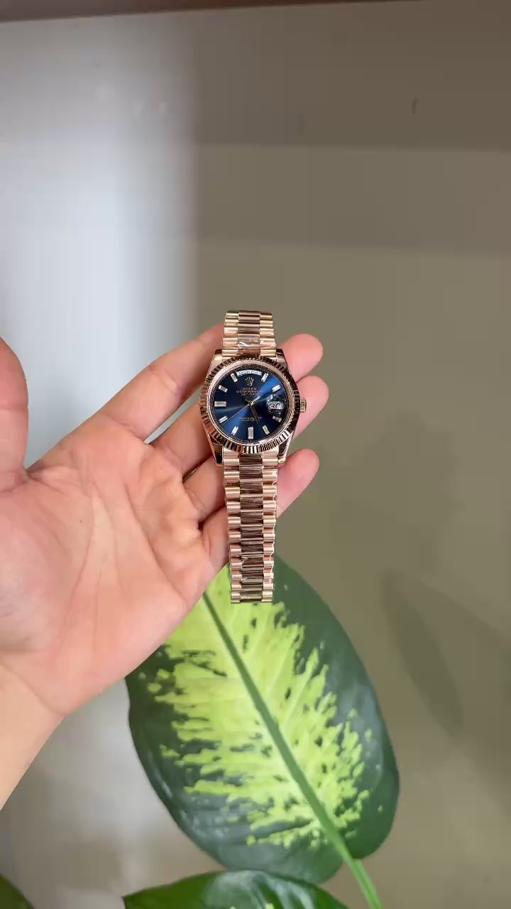 Rolex Day-Date Blue Dial Swiss 1:1 Watch 18K Gold Wrapped Weight 186 Grams QF Factory 40mm