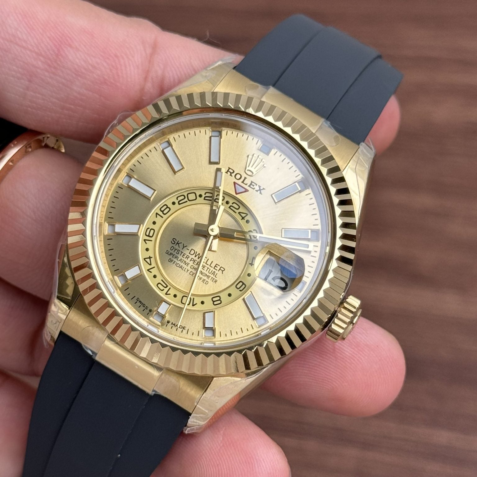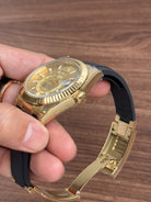 Rolex Swiss 1:1 Watches Sky-Dweller Yellow Gold Dial Black Rubber Strap 42mm