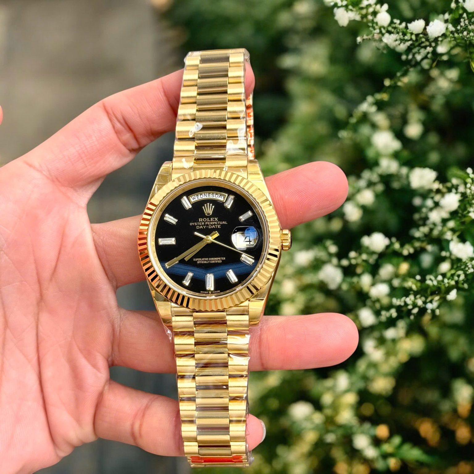 Rolex Swiss 1:1 Watches Day-Date 228235 Black Dial & President Strap Men’s 40mm
