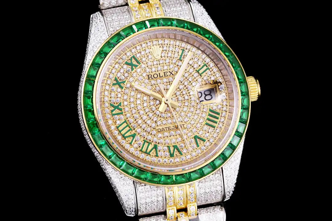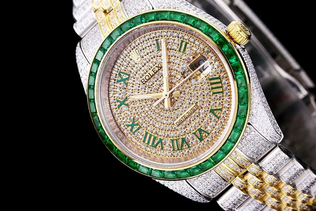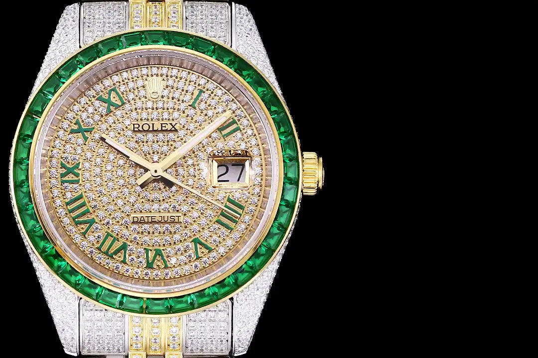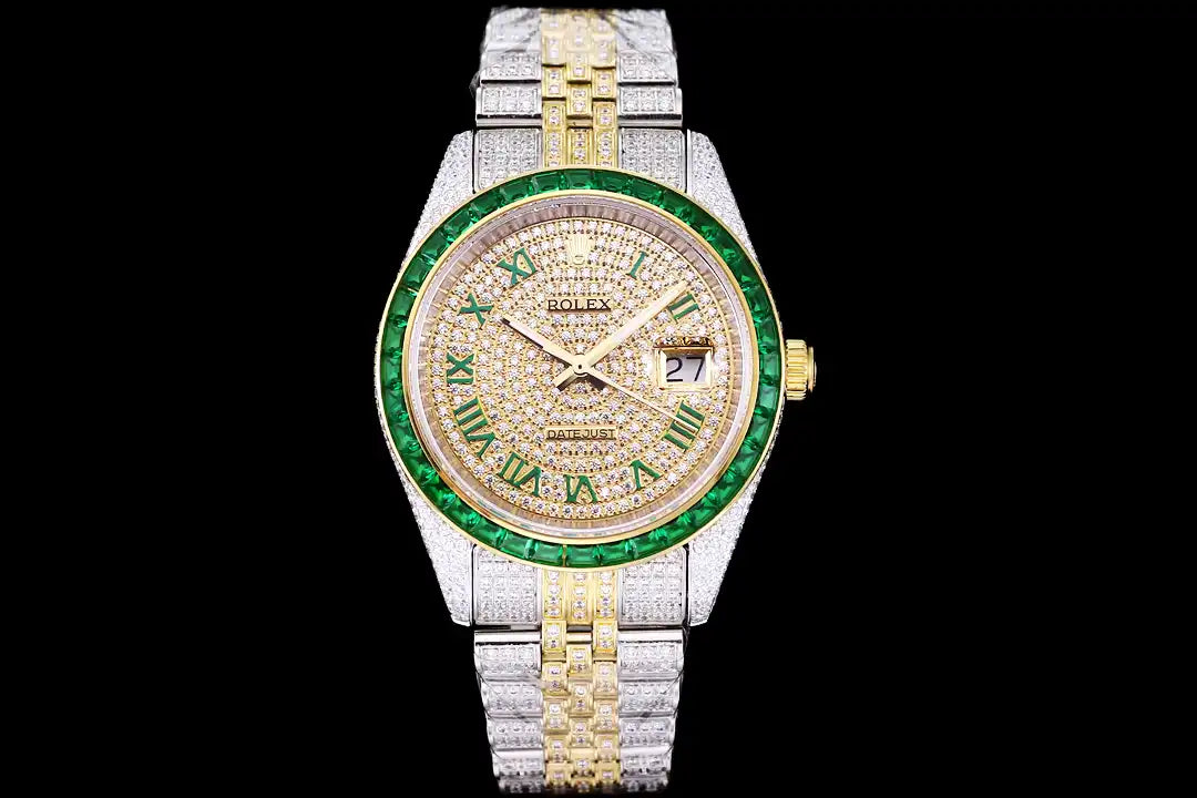Rolex Datejust 126300 41mm Arabic Dial Full-Diamond Green Bezel