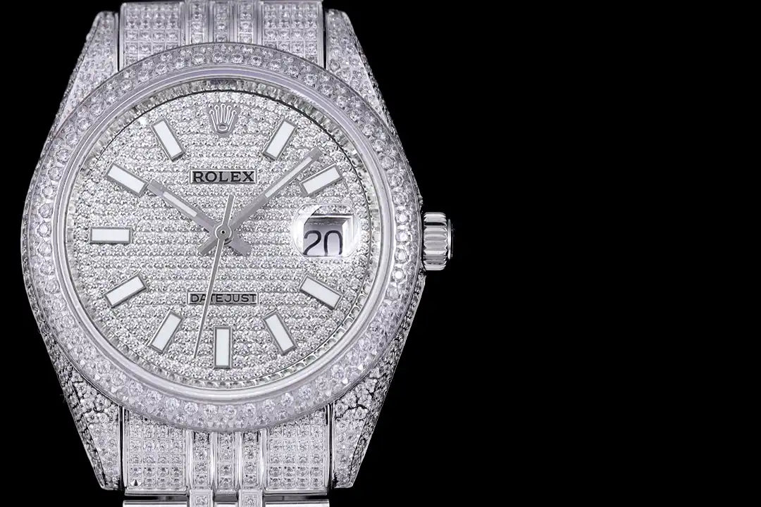 Rolex Datejust 126300 41mm Full-Diamond White Baton Markers
