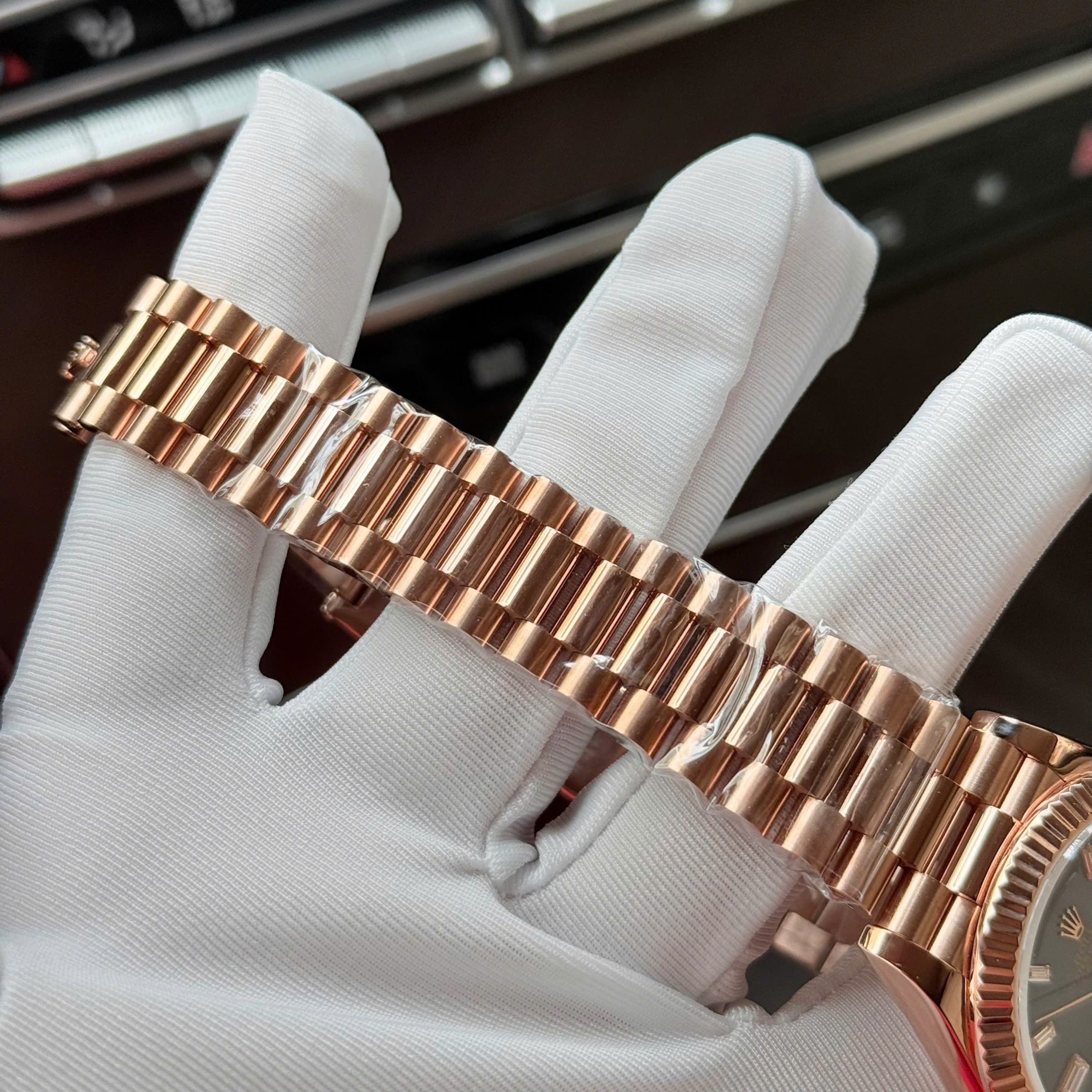 Rolex Swiss 1:1 Watches Day-Date 228235 Black Dial & President Strap Men’s 40mm
