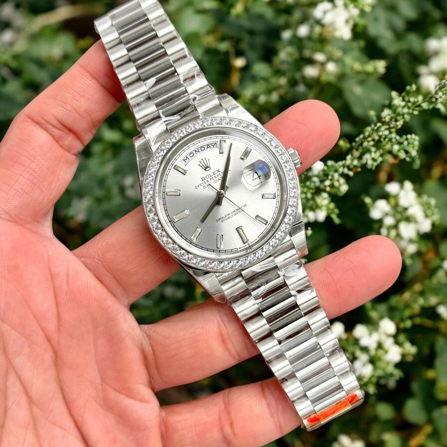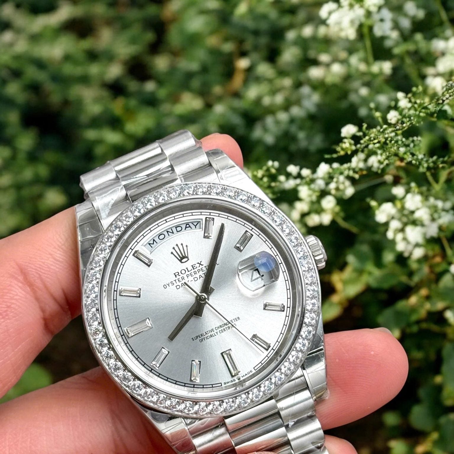 Rolex Swiss 1:1 Watch Day-Date 228236 Sliver Dial & Bezel Diamonds Men’s 40mm