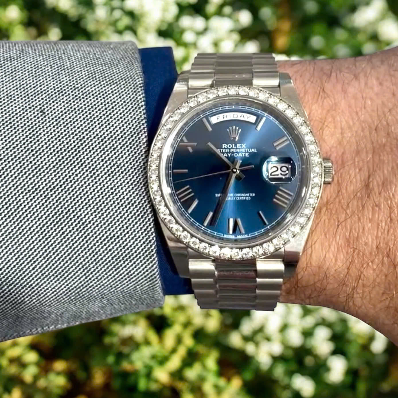 Rolex Swiss 1:1 Watch Day-Date 228236 Blue Dial & Diamonds Bezel Men’s 40mm