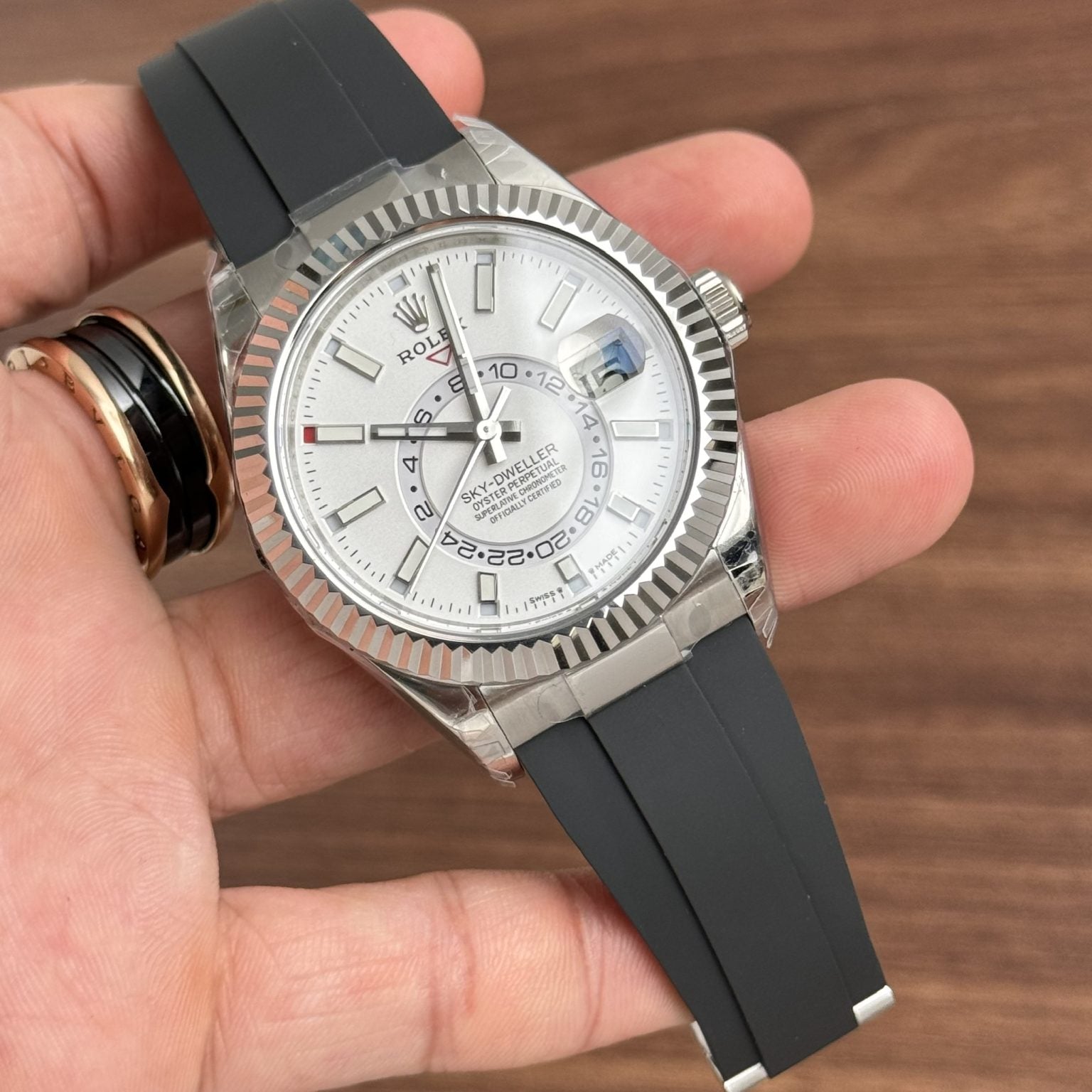 Rolex Swiss 1:1 Watches Sky-Dweller White Dial Black Rubber Strap 42mm