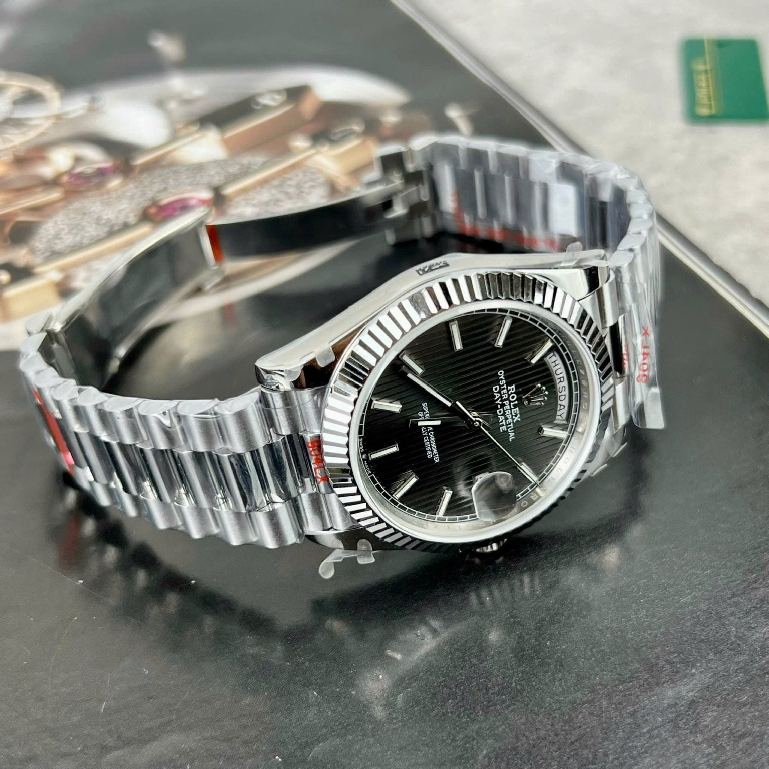 Rolex Swiss 1:1 Watch Day-Date 228236 Black with Stones Dial GM Factory 178 Grams 40mm