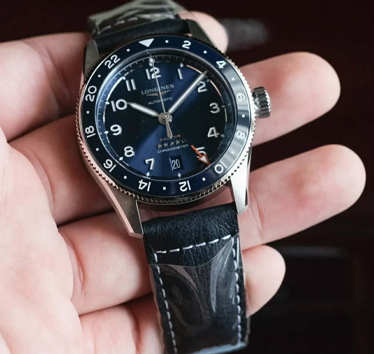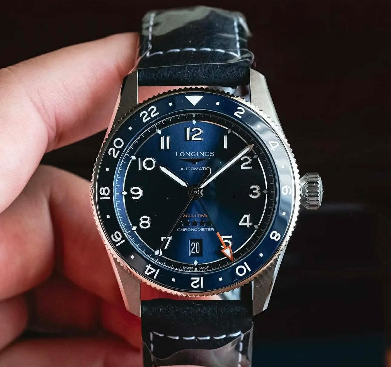 LONGINES SPIRIT ZULU TIME, L3.812.4.93.2, automatic watch, 42.00 mm, stainless steel and ceramic bezel