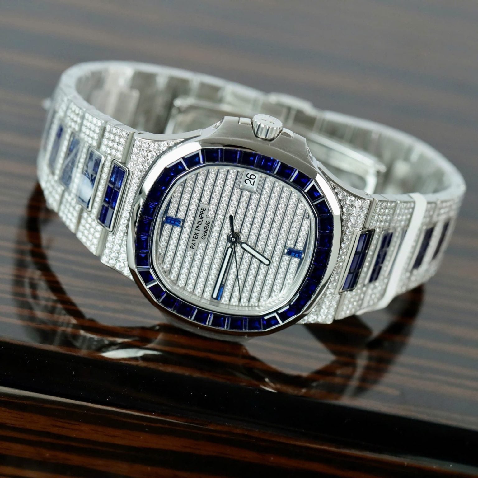 Patek Philippe Nautilus 5719 Swiss 1:1 Watch Diamonds Moissanite & Sapphire Baguette Custom 40mm