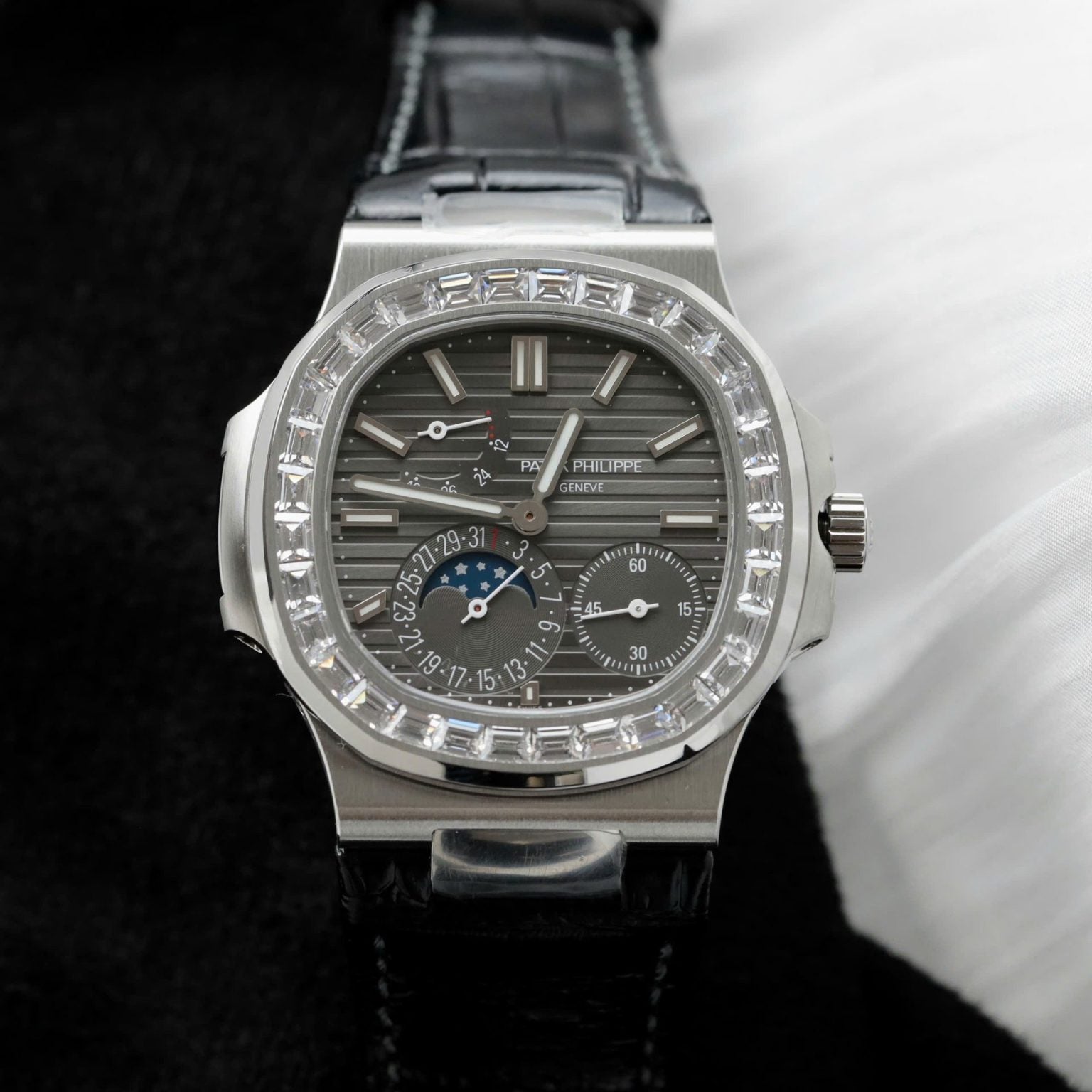 Patek Philippe Swiss 1:1 Watch Nautilus 5724 Gray Dial Leather Strap PPF Factory 40mm