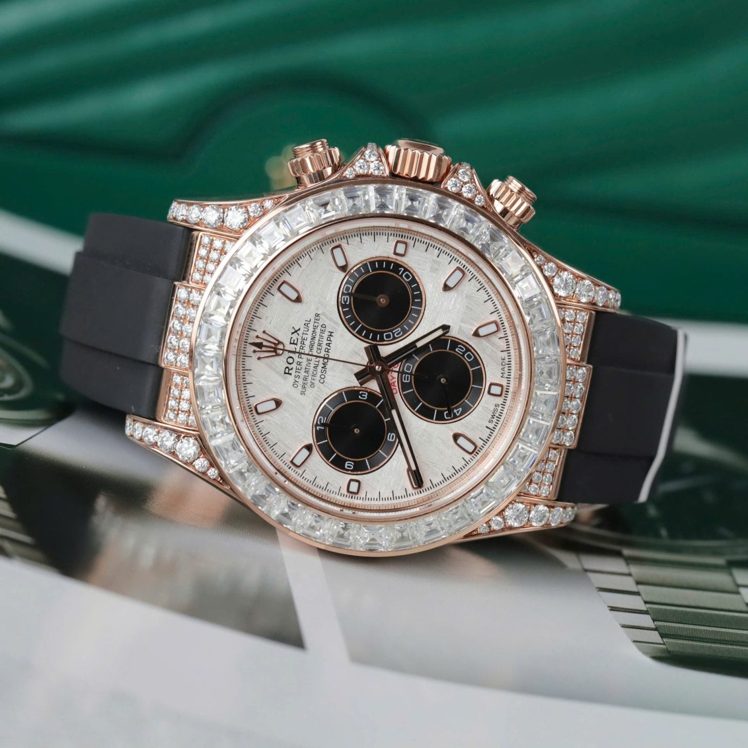 Rolex Daytona Swiss 1:1 Watch 18K Gold Wrapped + Diamonds Moissanite Baguette 40mm