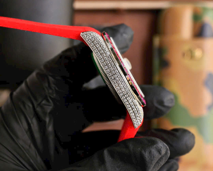 Rolex DateJust Swiss 1:1 Watches Full Diamonds Red Ruby Bezel Rubber Strap 41mm
